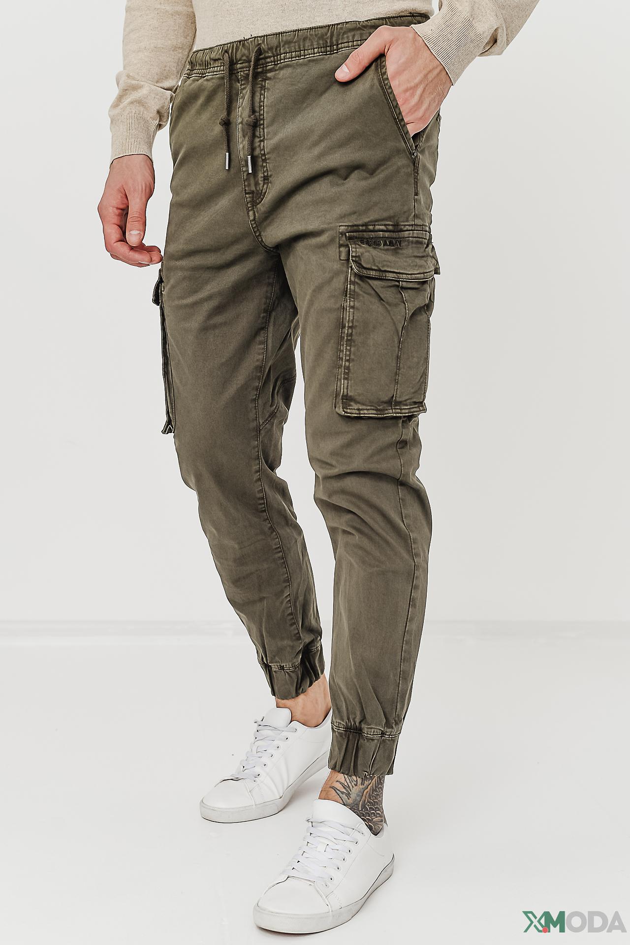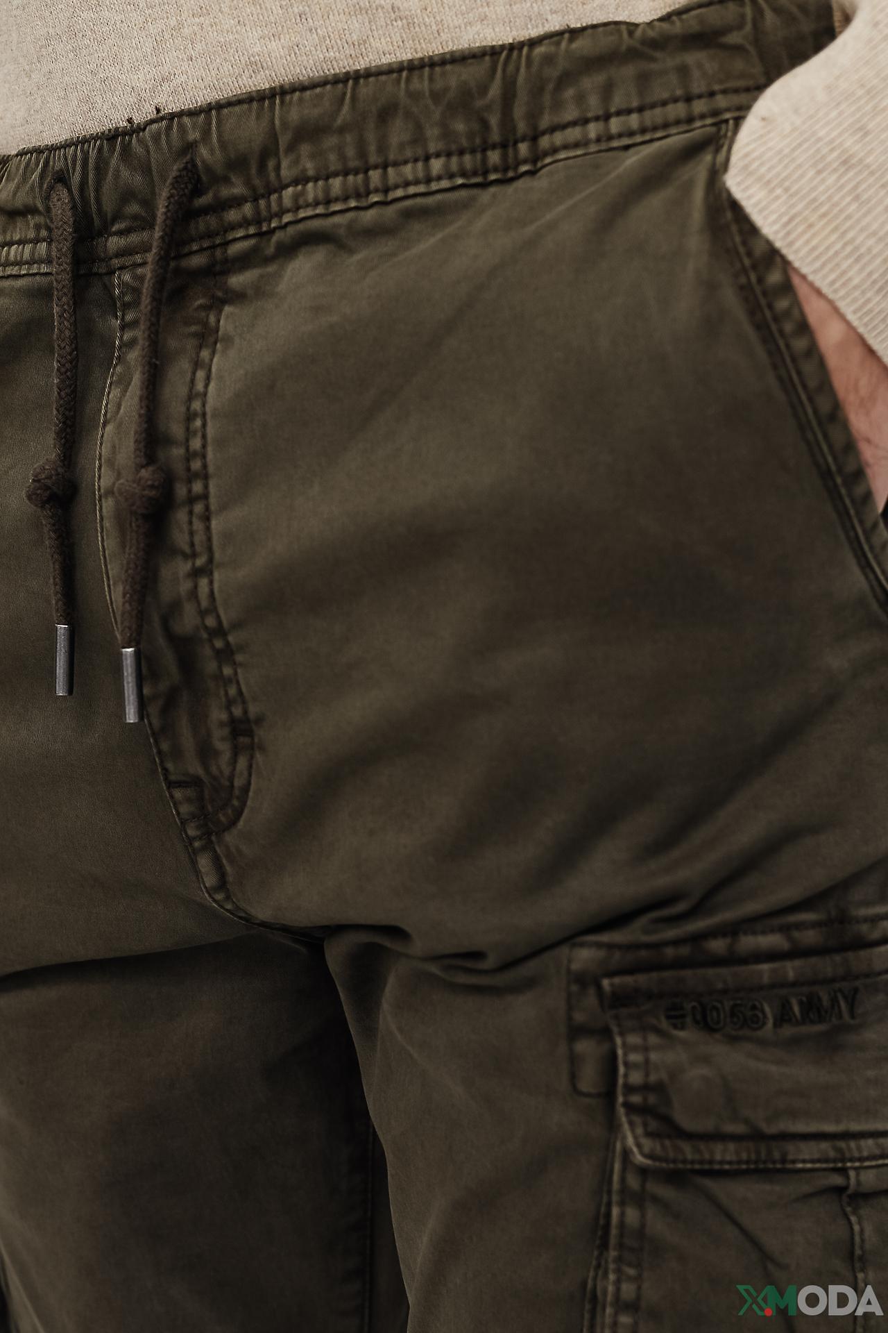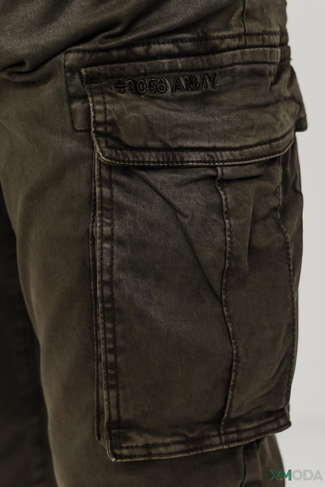 - Стильный вид: Оливковый цвет и эффект легкой потертости придают брюкам винтажный и брутальный характер, легко сочетающийся с различными элементами гардероба. Оригинальная нашивка "0056 ARMY" на кармане подчеркивает армейский стиль.