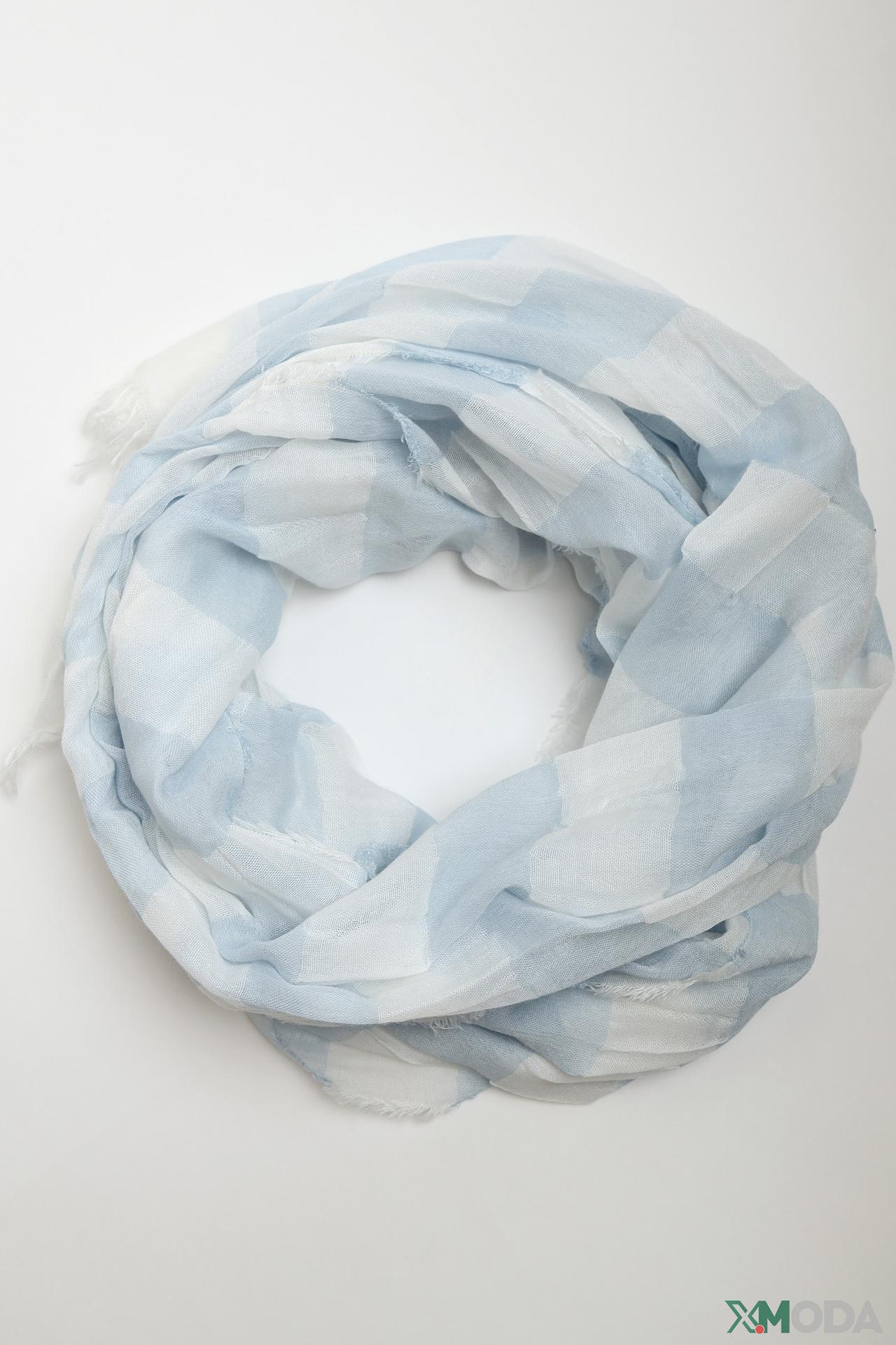 Шарф голубого цвета бренда Apart. Модель дополнена бахромой. Ткань имеет разноцветный принт. Состав: 30% вискоза, 40% полиэстер, 30% хлопок. Сочетать можно с различными деталями вашего гардероба.