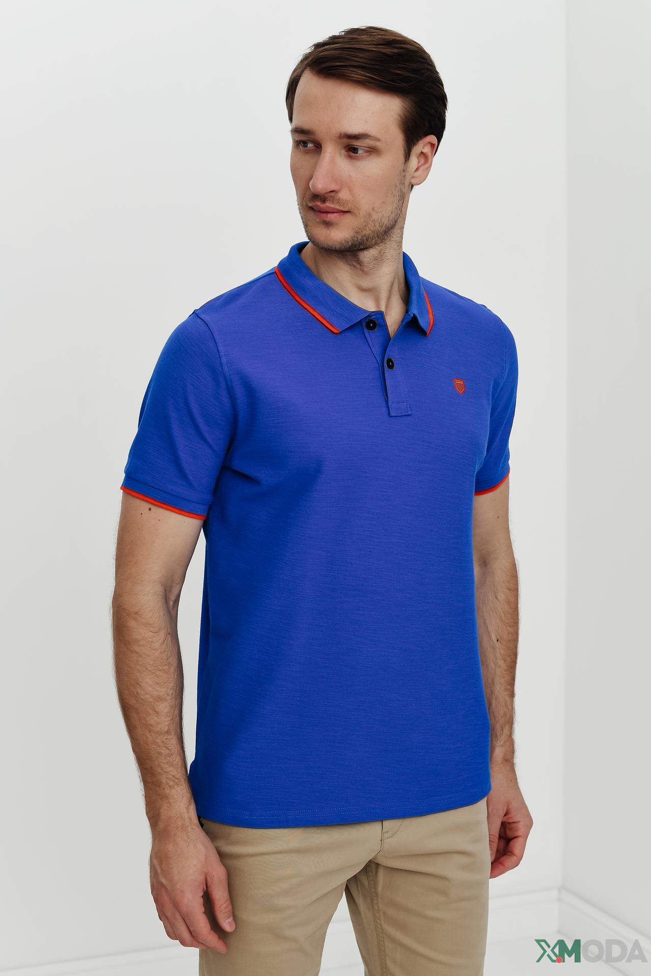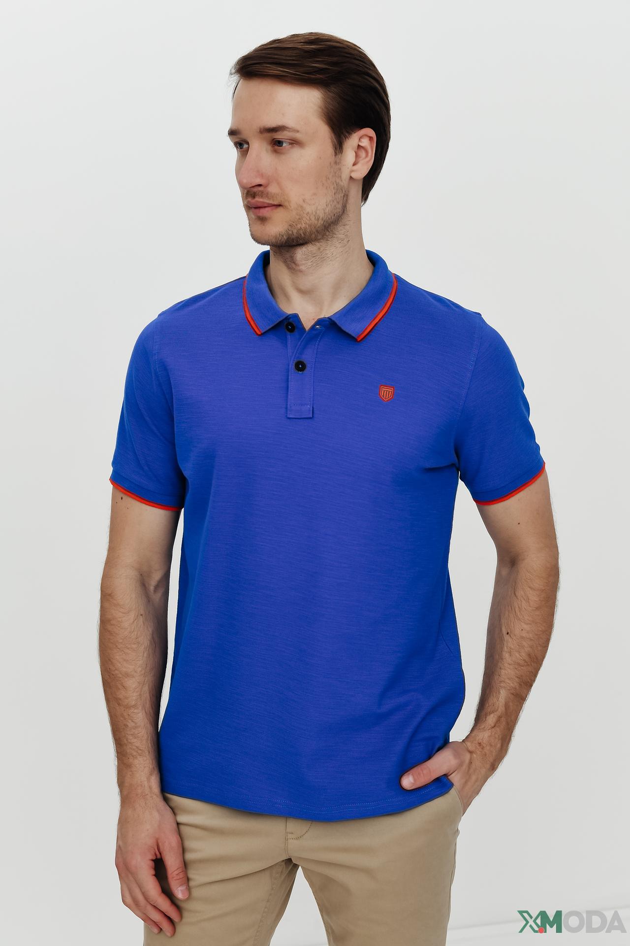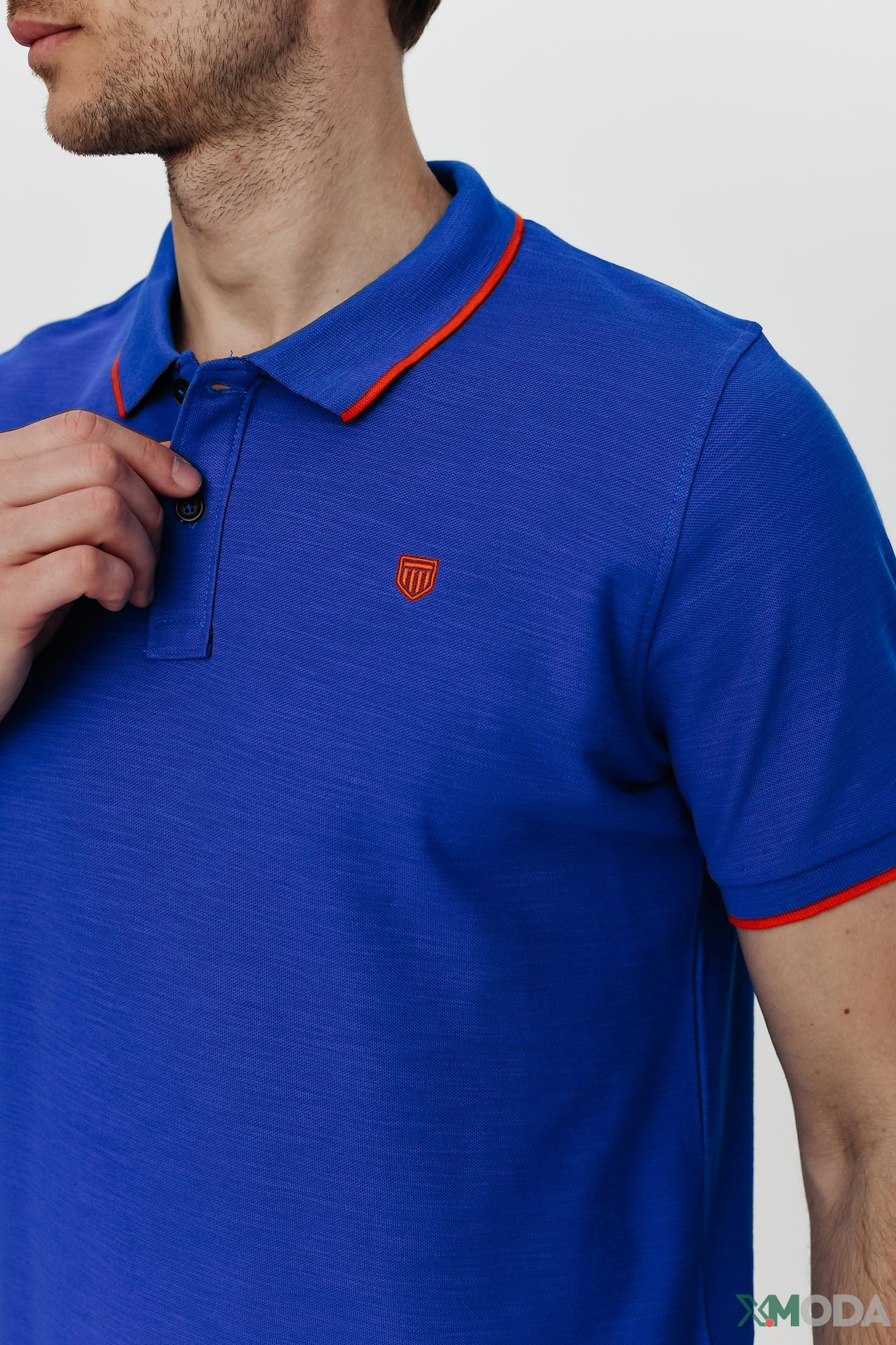 Поло Basefield синее с контрастной отделкой и вышивкой логотипа