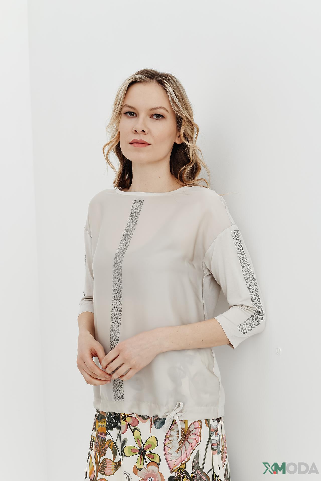 - Свободный крой: Прямой, слегка свободный крой обеспечивает максимальную свободу движений и комфорт в течение всего дня. Рукава длиной ¾ идеально подходят для любого сезона, подчеркивая запястья.