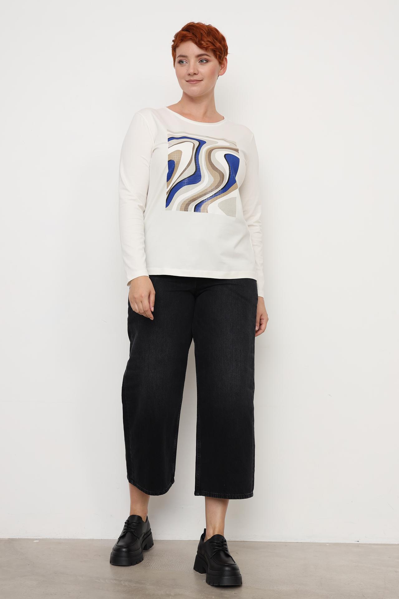 Универсальный крой и лаконичный дизайн делают этот лонгслив прекрасным дополнением к любому гардеробу. Абстрактный принт добавляет изделию оригинальности и делает его более интересным. Прекрасно сочетается с джинсами, брюками или юбками, позволяя создавать разнообразные стильные образы.
