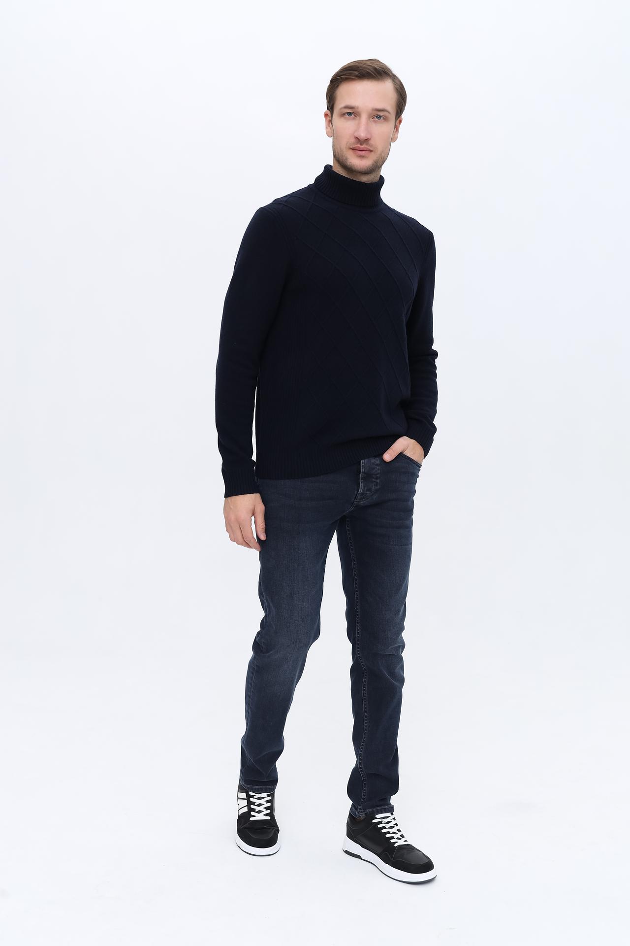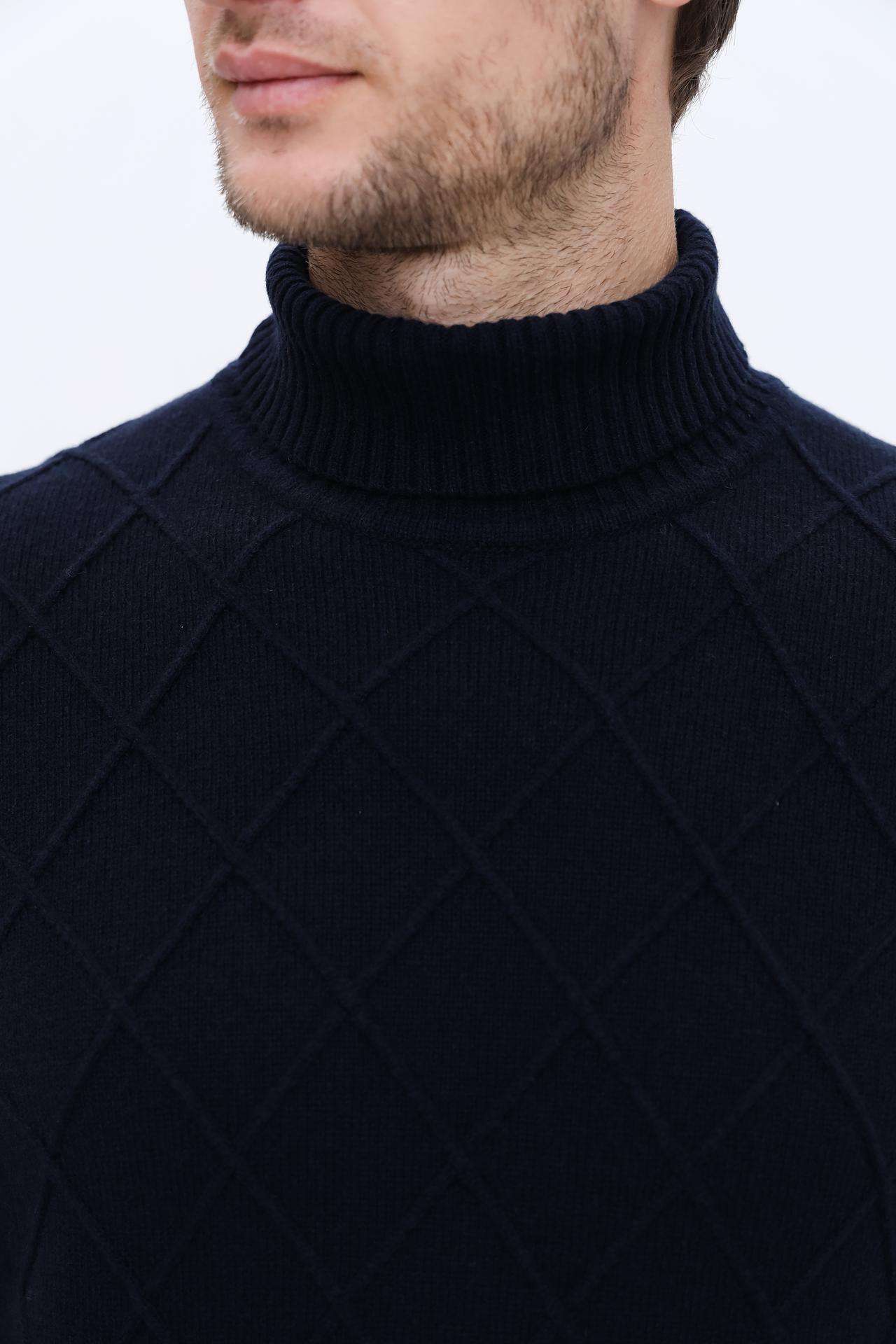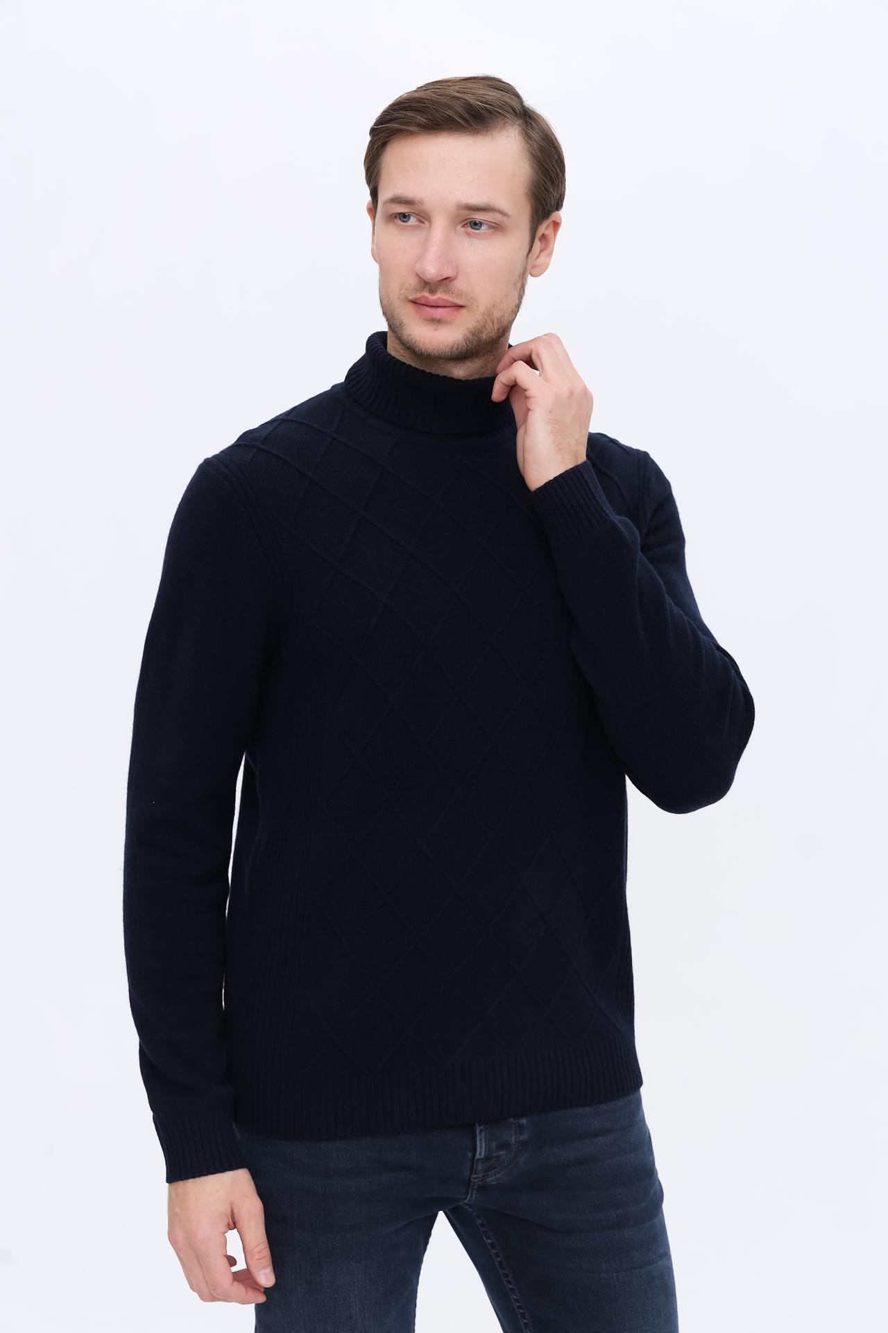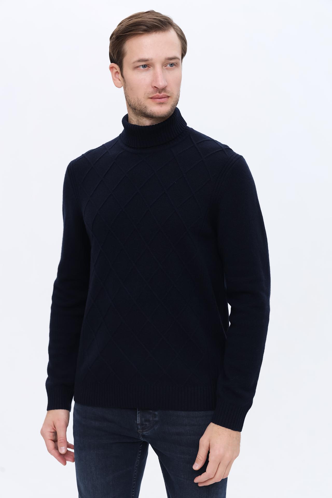 Мужская водолазка Bugatti тёмно-синяя с ромбовидным узором