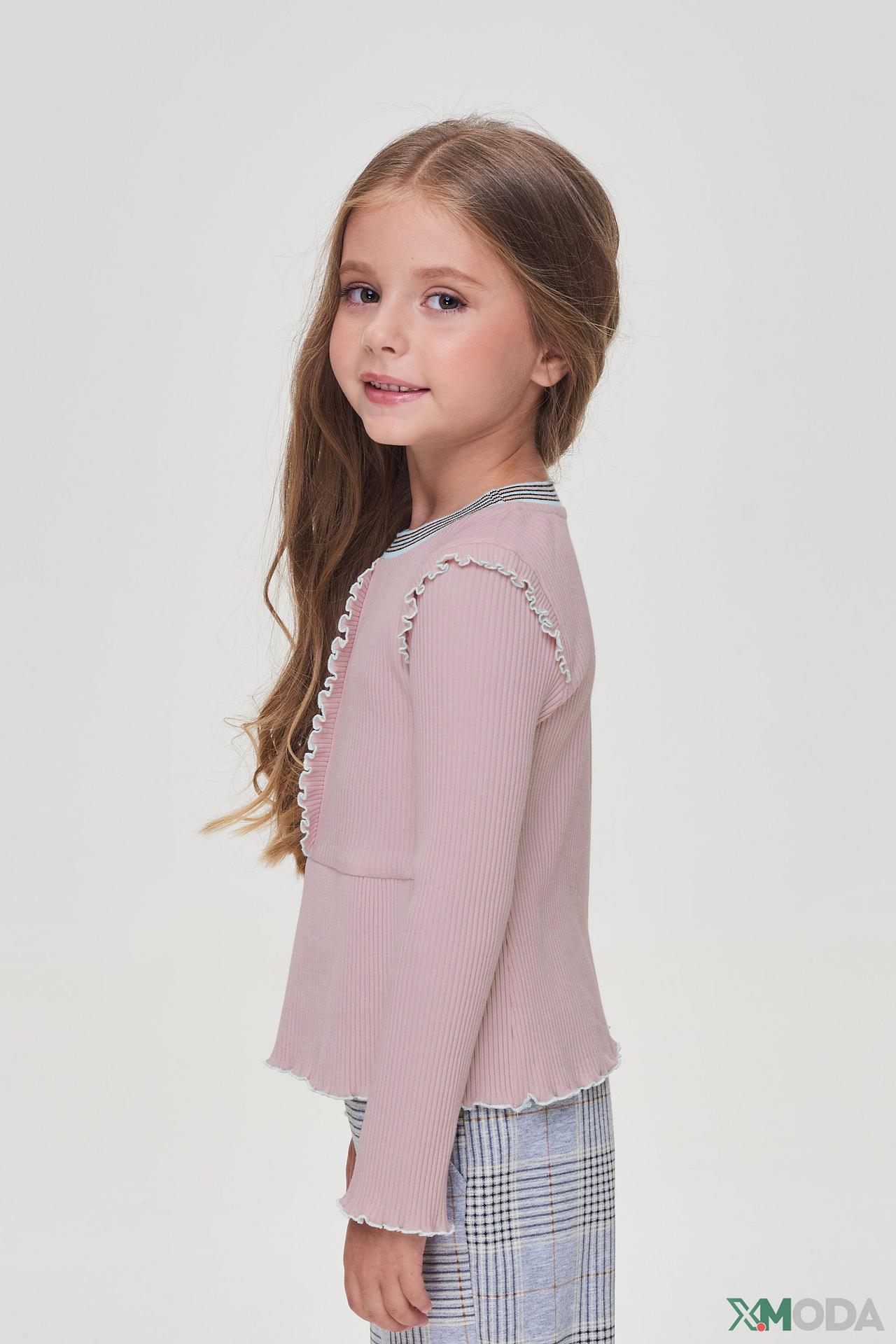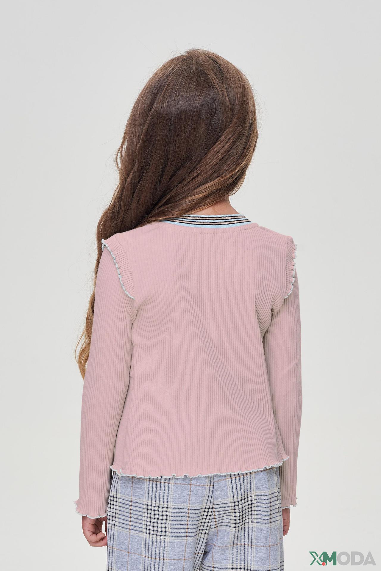 - Дизайн: Кардиган выполнен в нежном розовом цвете и украшен милыми рюшами по краям горловины и низа изделия, что придает ему особый шарм и женственность.