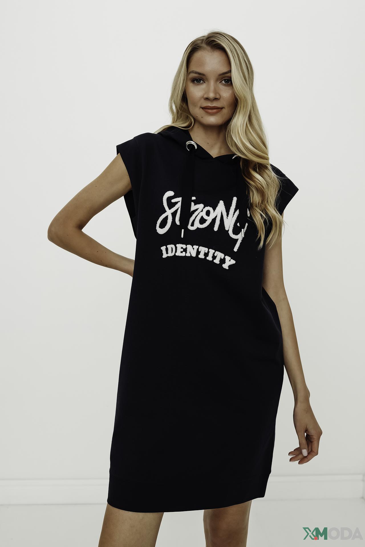 Платье-худи Comma без рукавов чёрное с надписью