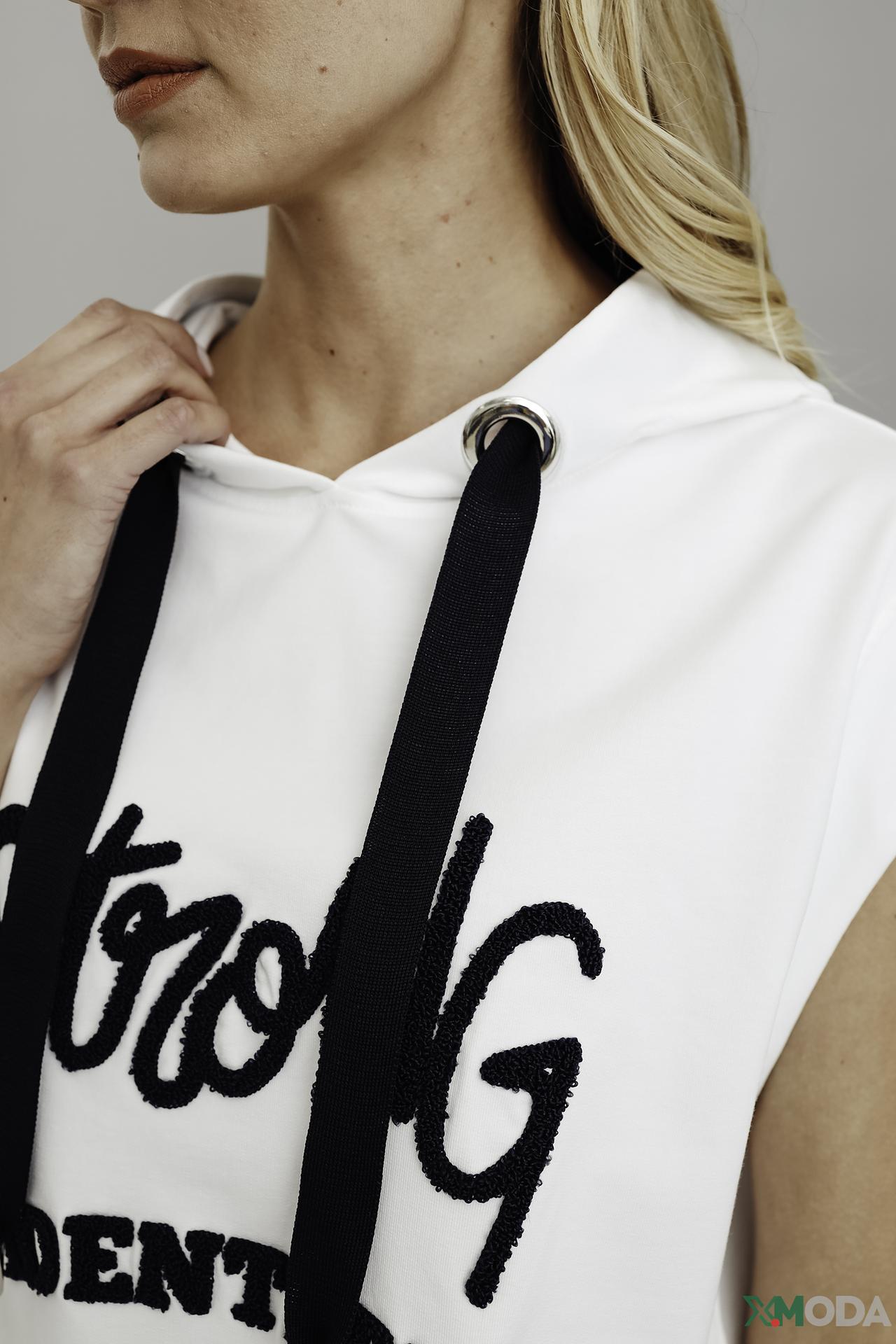 - Актуальный дизайн. Модель с капюшоном и декоративной надписью – тренд сезона, который подчеркнет вашу индивидуальность.