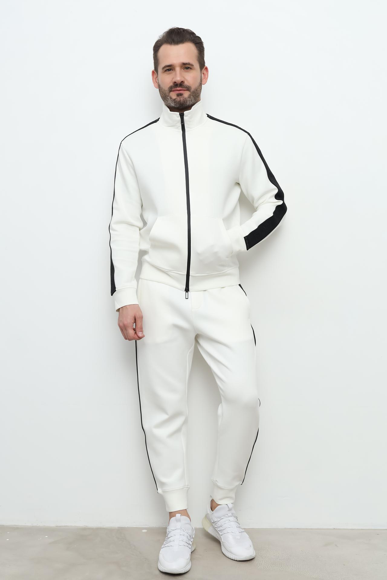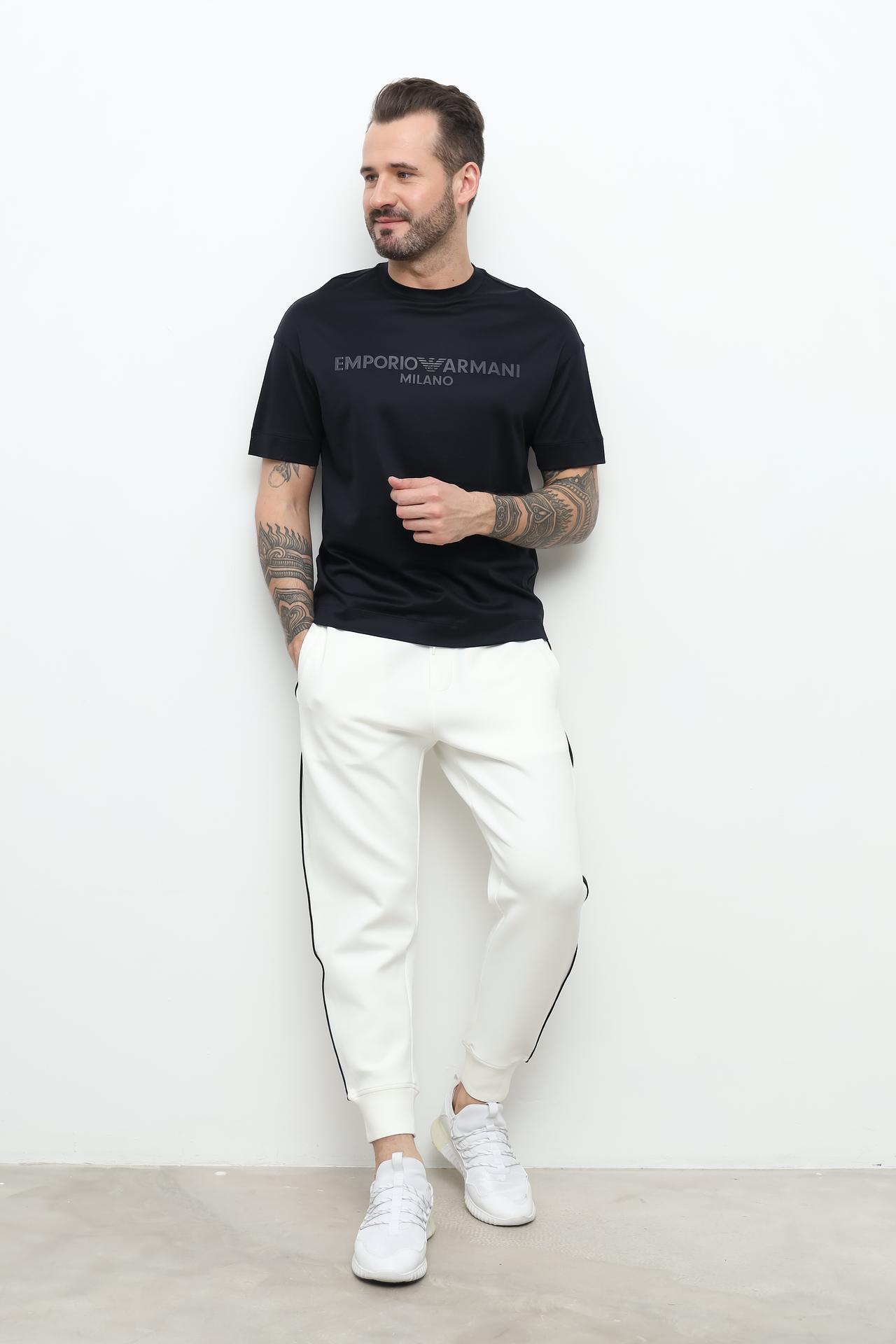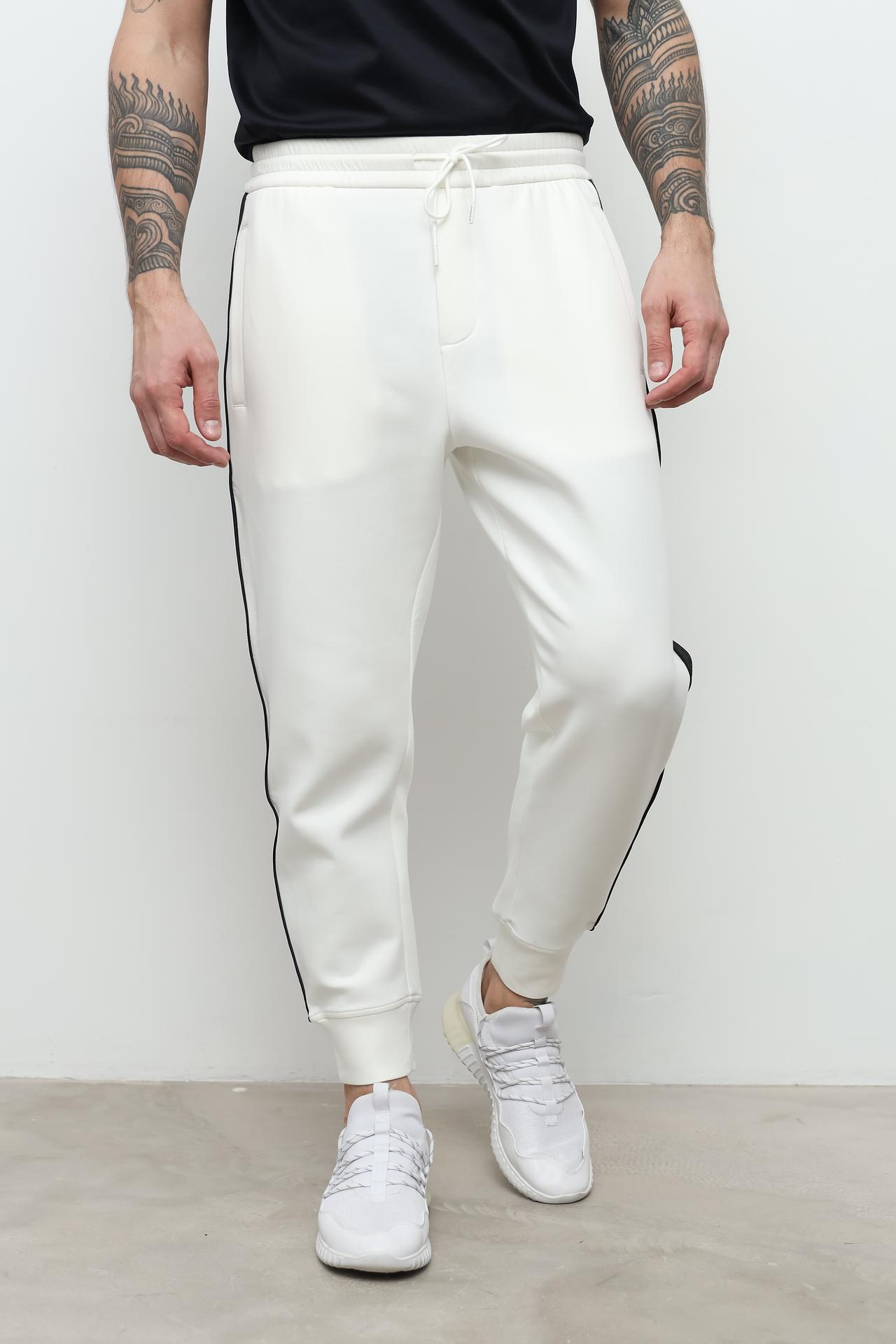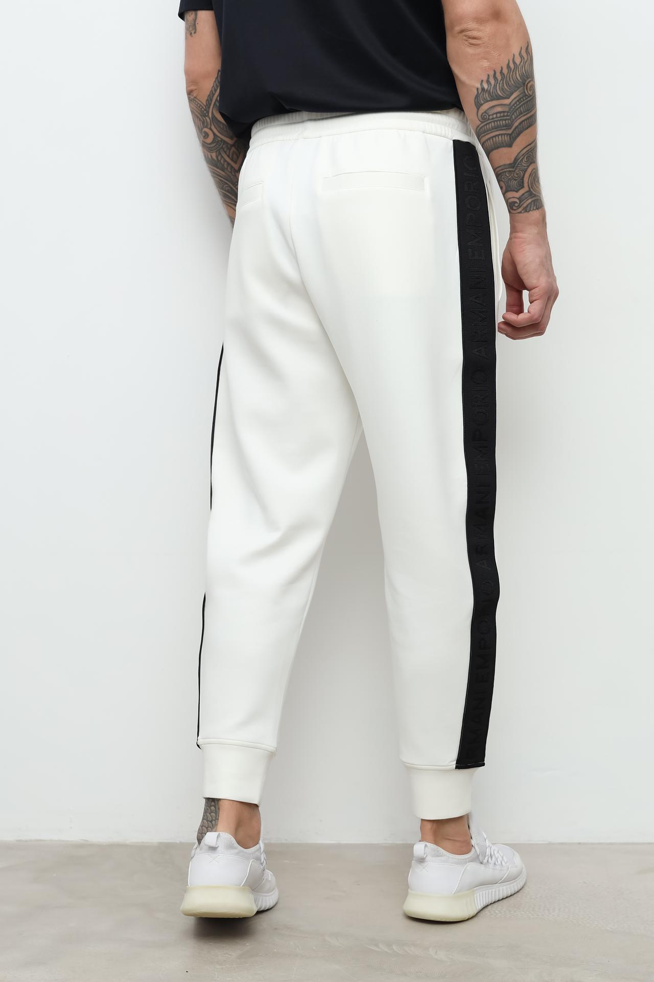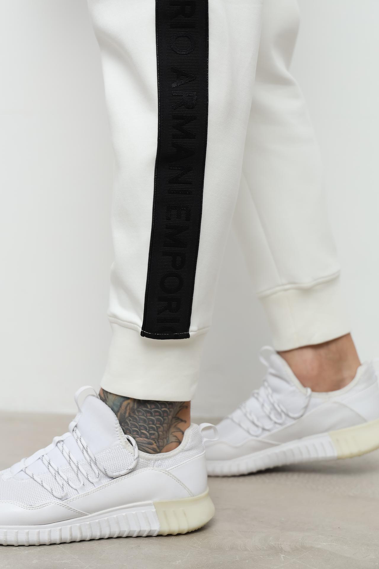 Брюки Emporio Armani белые, с чёрными брендированными лампасами