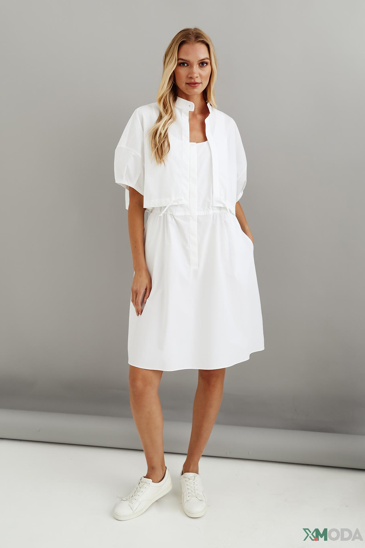 - Свободный крой с акцентом. Платье имеет свободный силуэт с регулируемой талией на кулиске, обеспечивая комфортную посадку и возможность подчеркнуть фигуру по желанию.