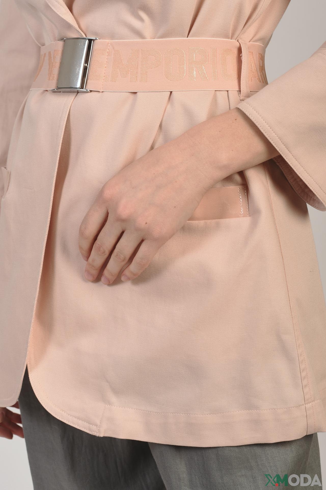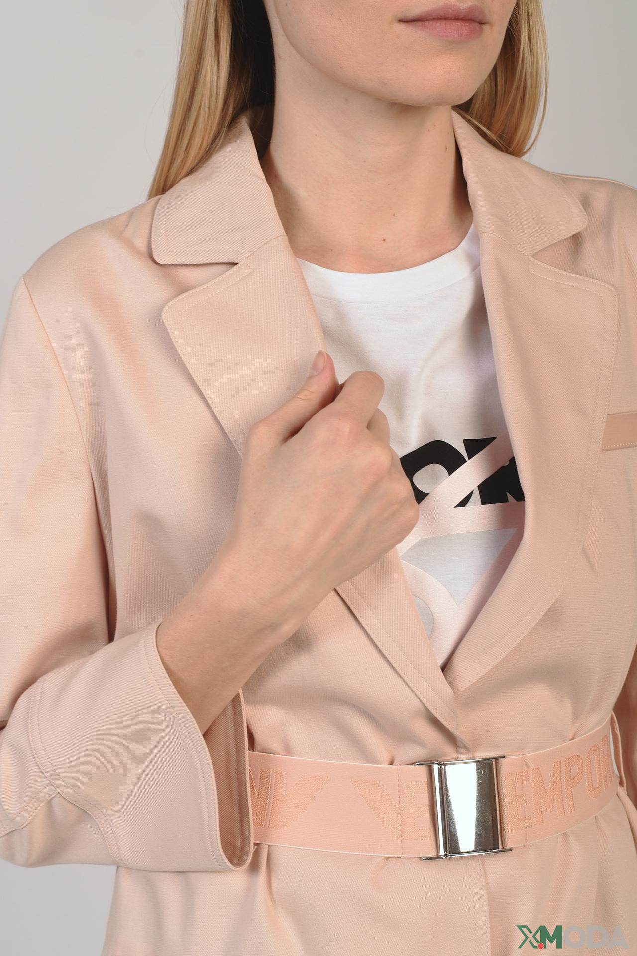 Элегантный женский жакет от Emporio Armani – идеальный выбор для создания утонченных образов. Выполненный в нежном бежевом оттенке, он дополнит как деловой, так и повседневный гардероб. Классический крой с отложным воротником и стильный пояс с логотипом бренда подчеркнут вашу индивидуальность.