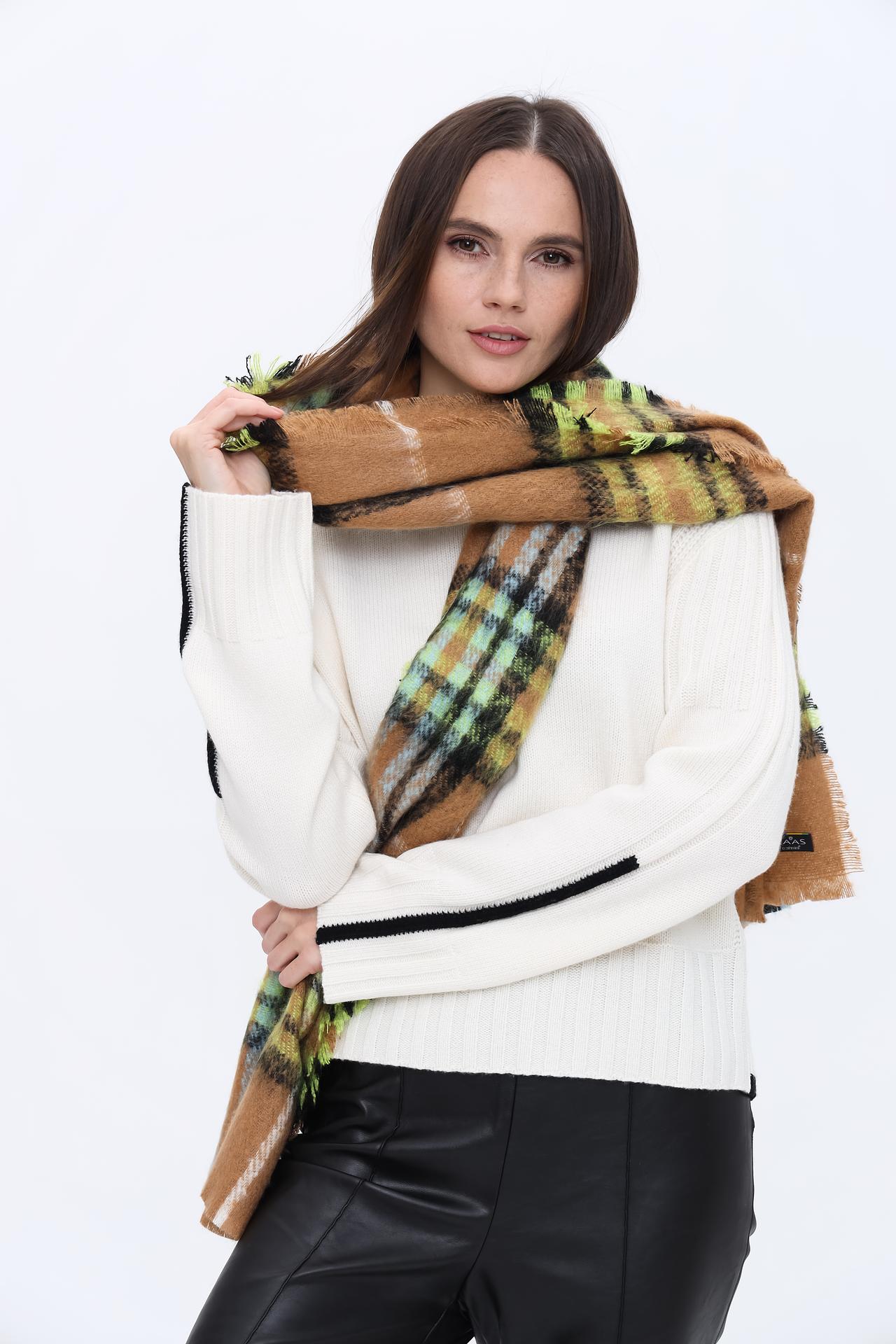 - Дизайн: Клетчатый принт придает шарфу модный и стильный вид.