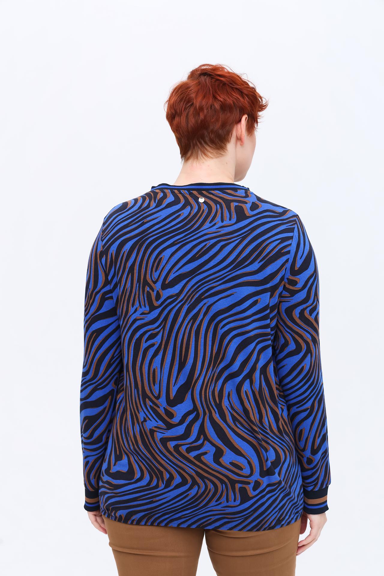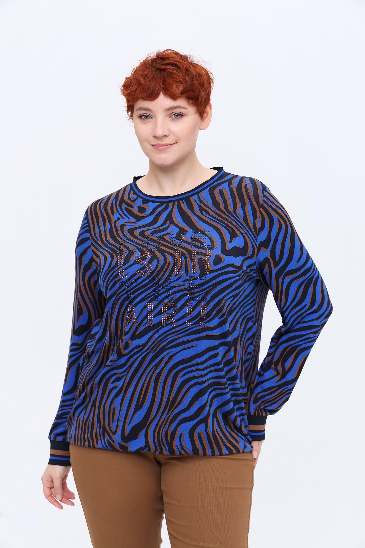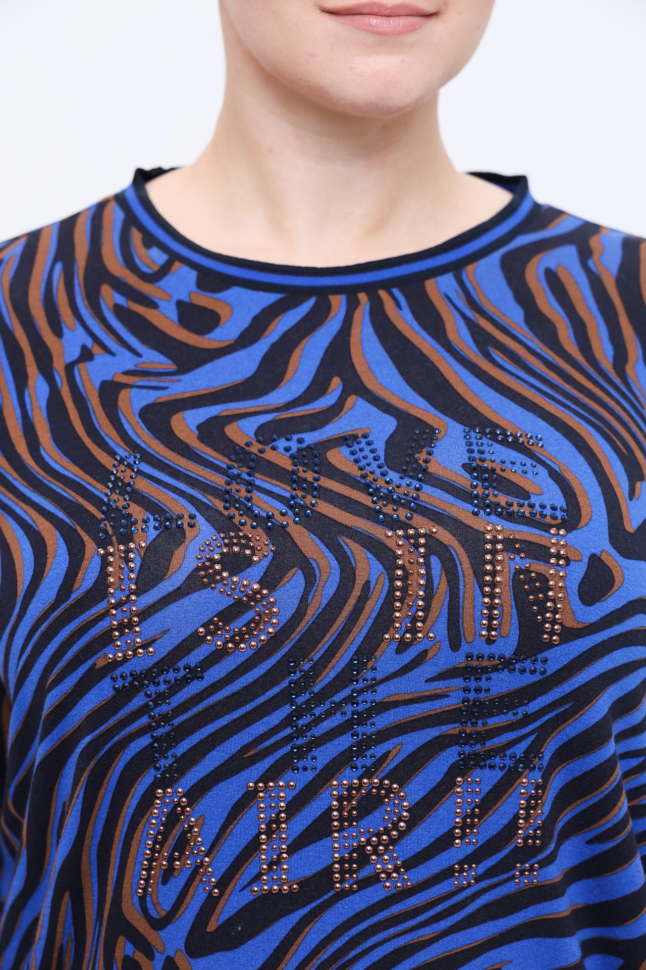 Лонгслив Frapp синий с зебровым принтом и стразами