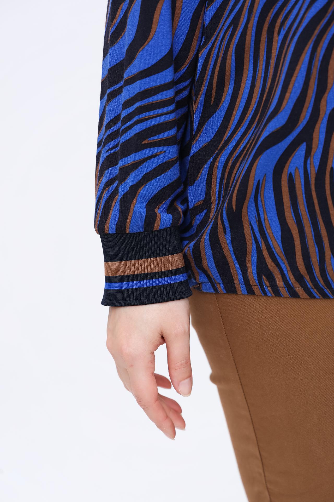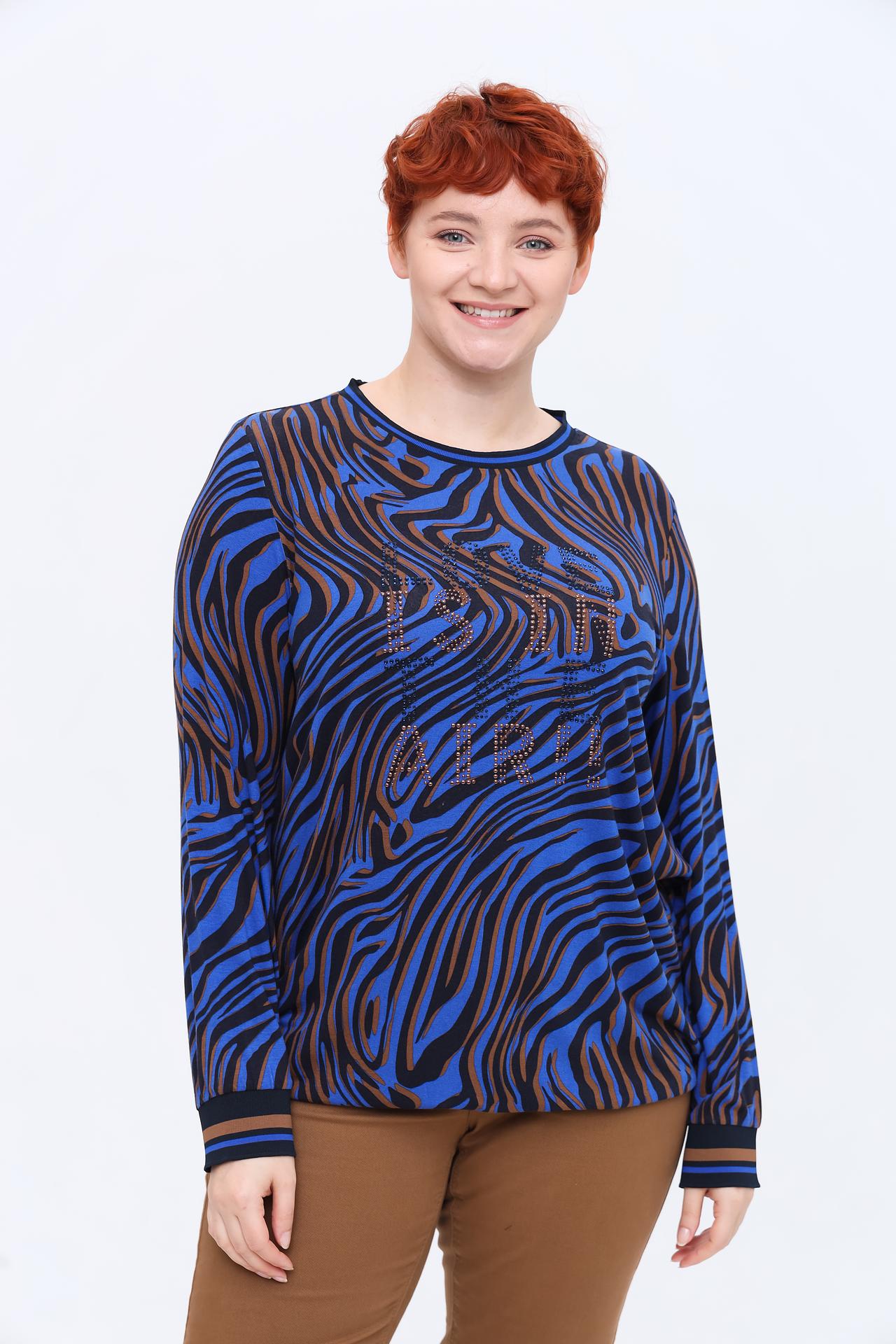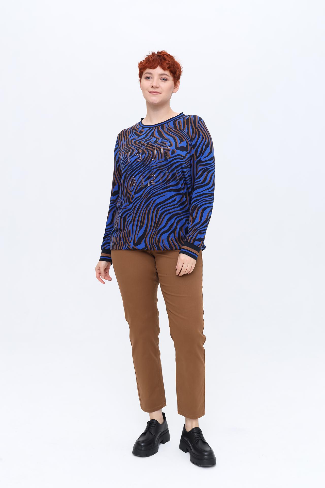 Лонгслив Frapp синий с зебровым принтом и стразами