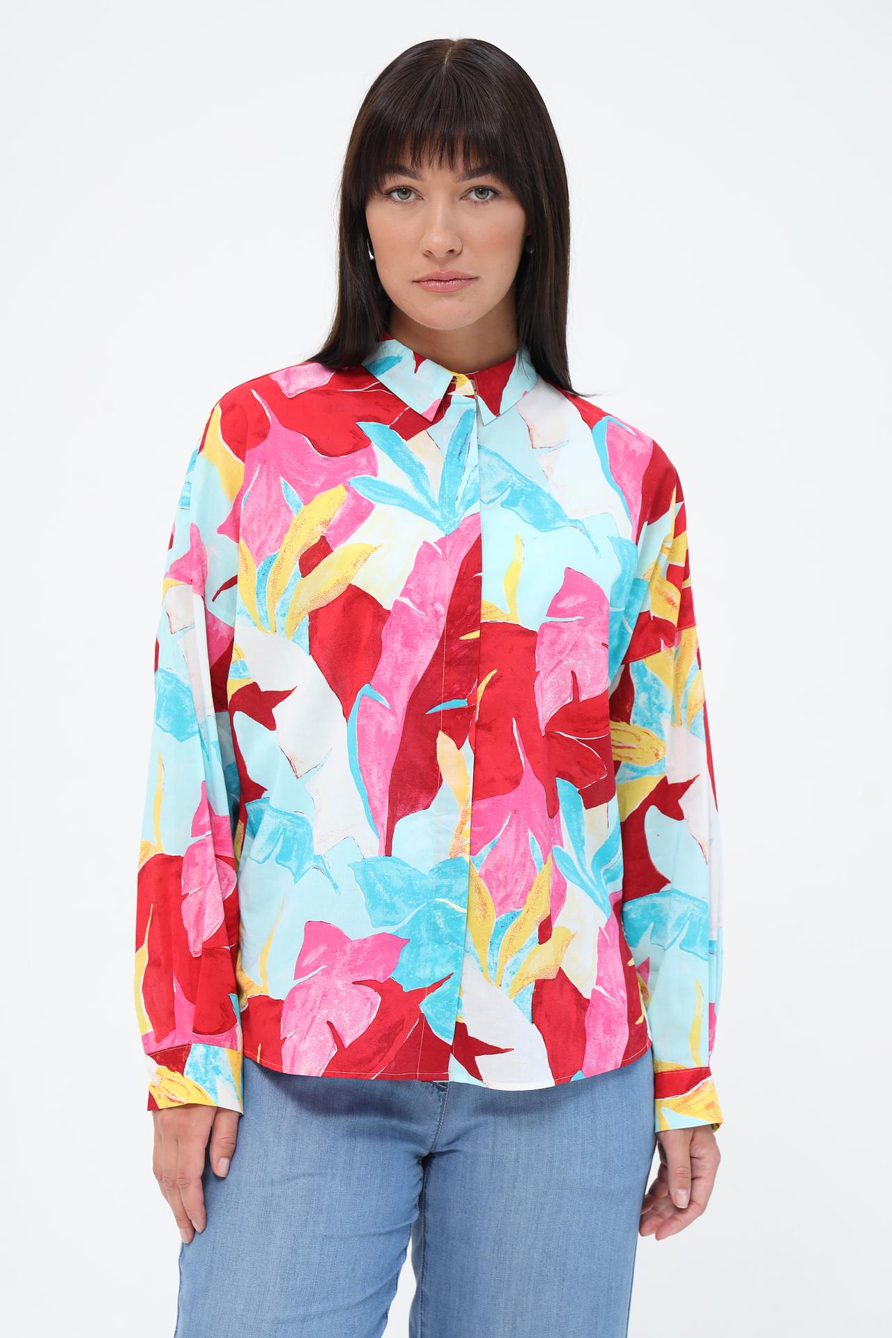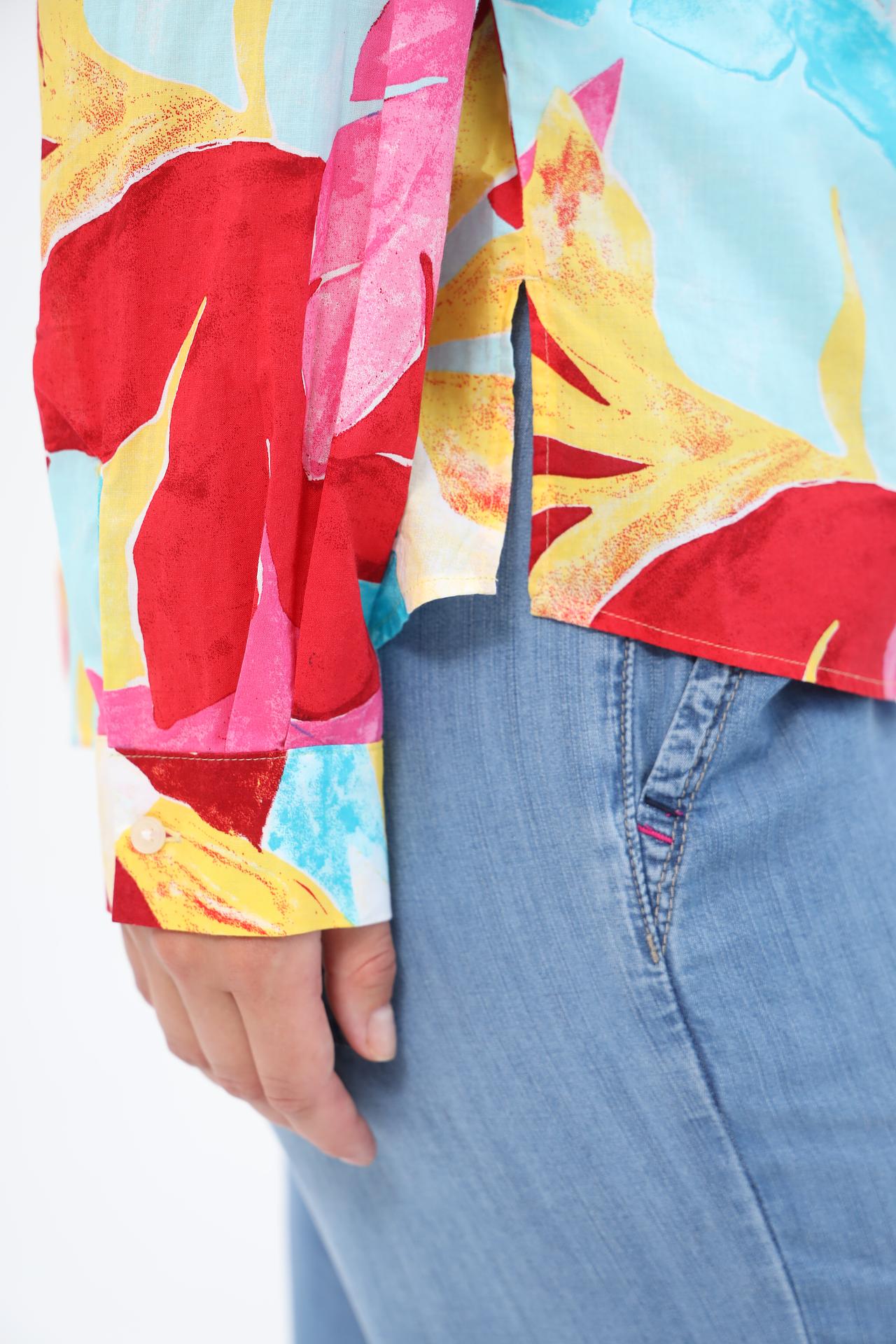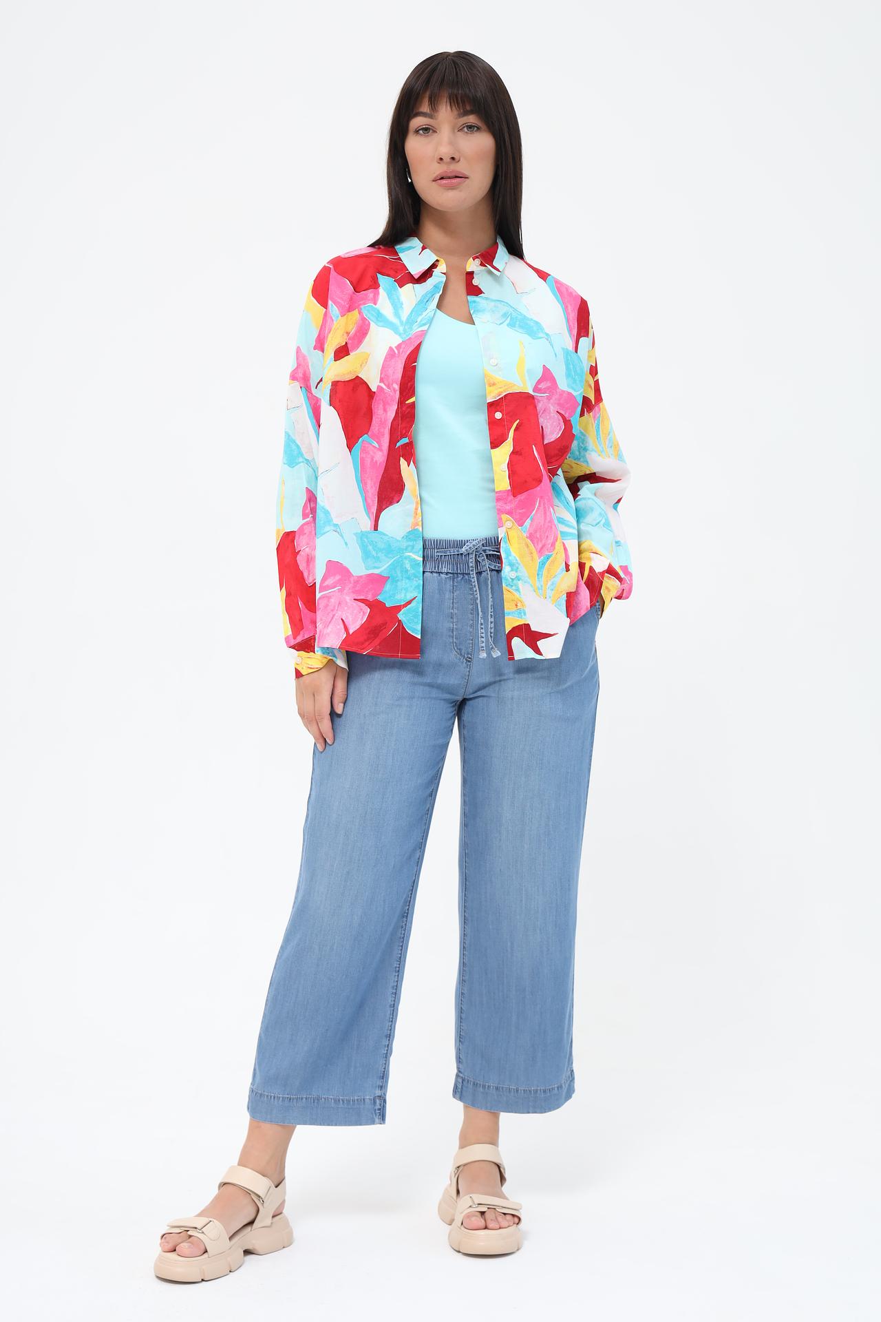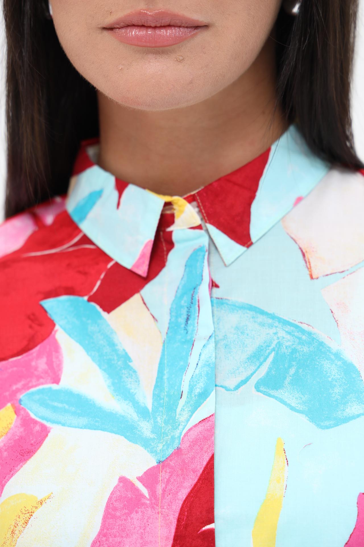 - Яркий дизайн: Сочный, разноцветный принт с тропическими листьями придает блузе неповторимый и жизнерадостный вид, выделяя вас из толпы и добавляя красок в ваш образ.