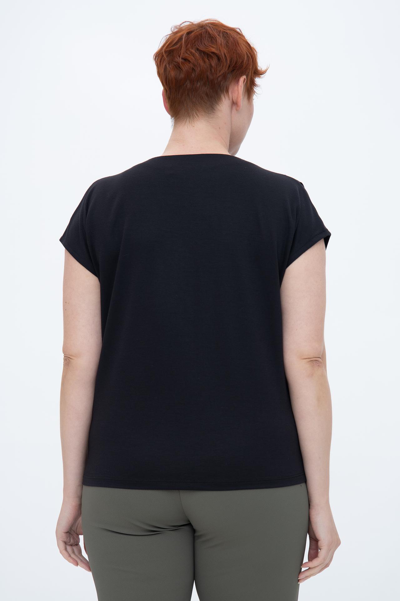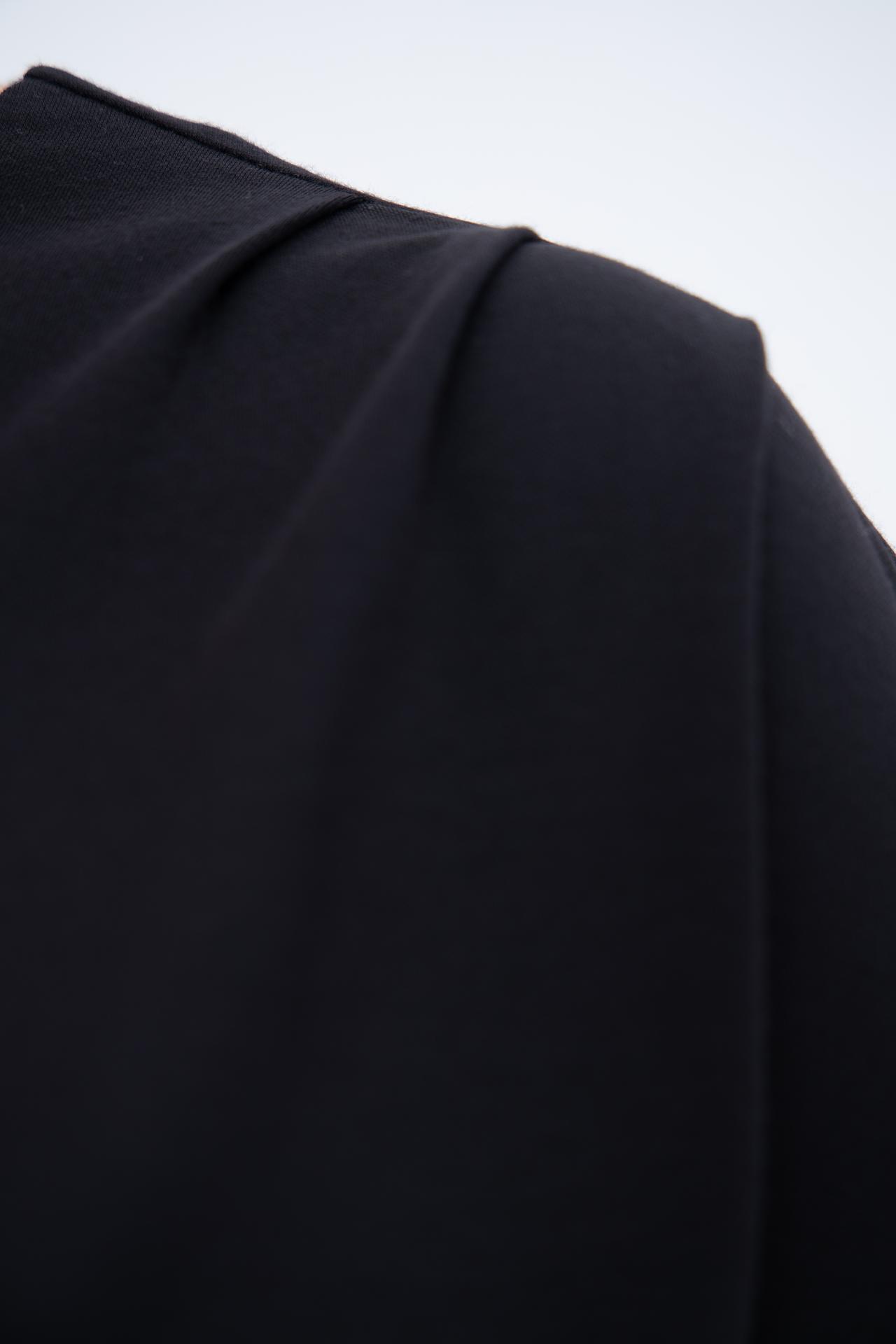 • Дизайн: Классический черный цвет и V-образный вырез дополнены элегантной плиссировкой, создающей деликатный объем и акцент на зоне декольте.