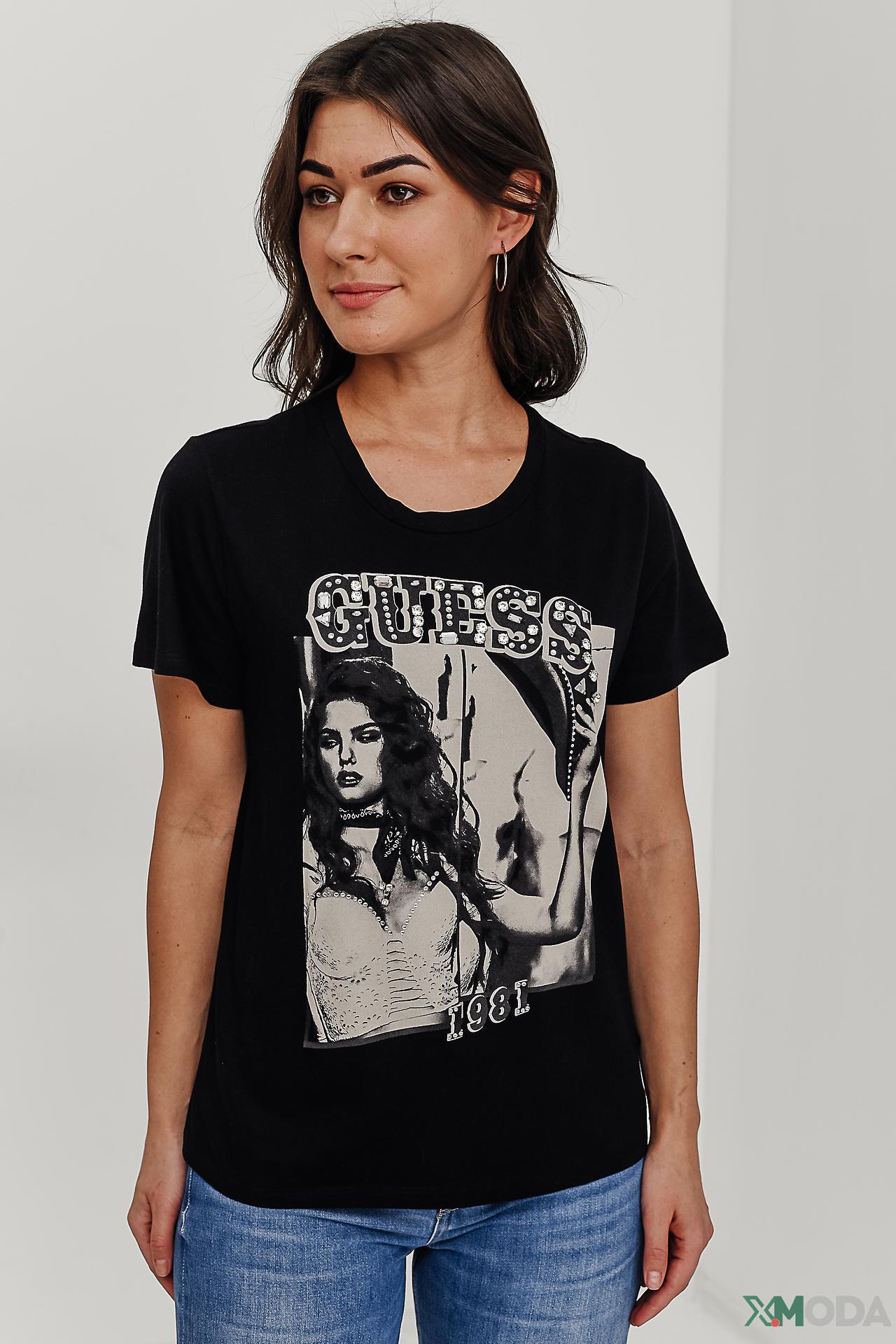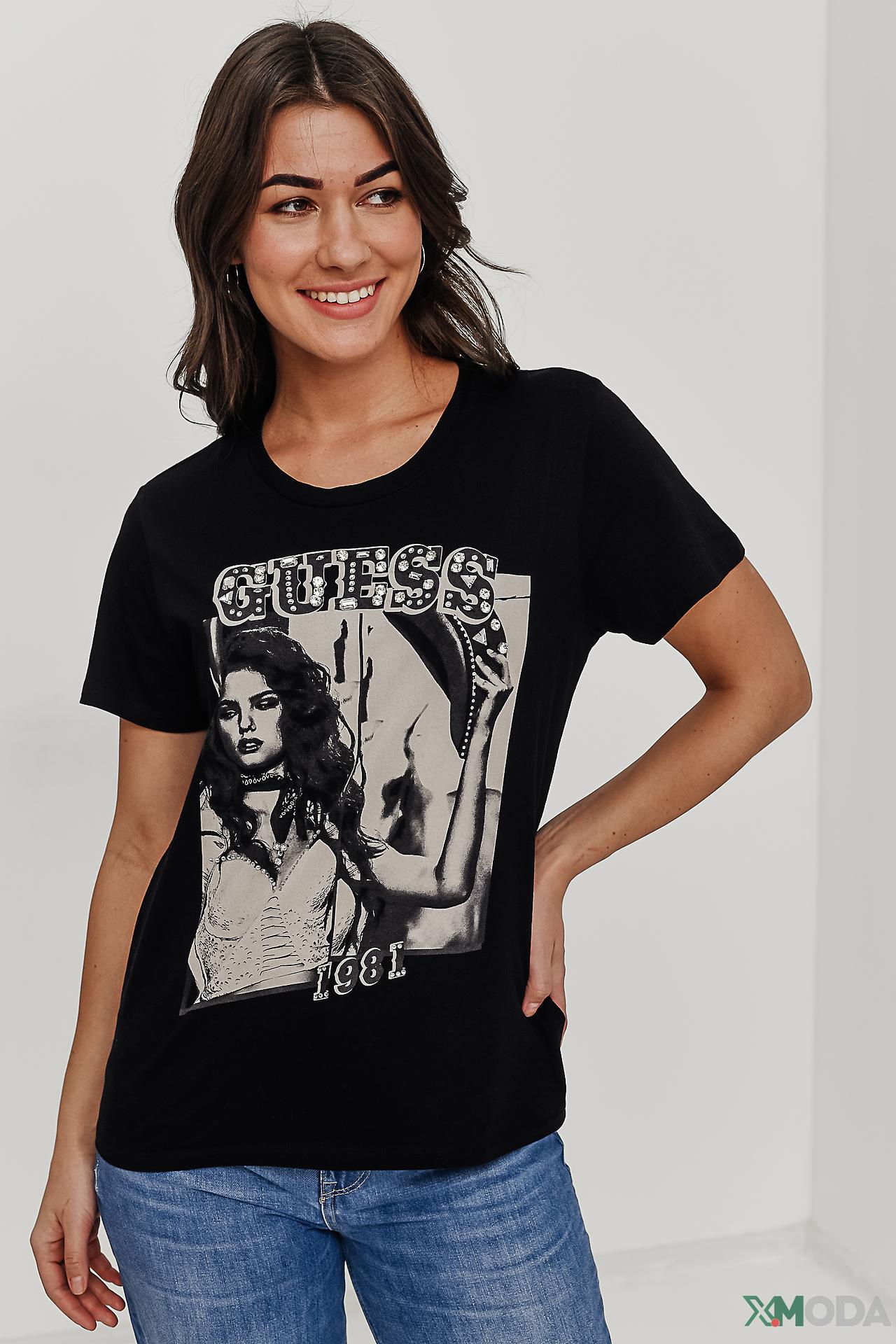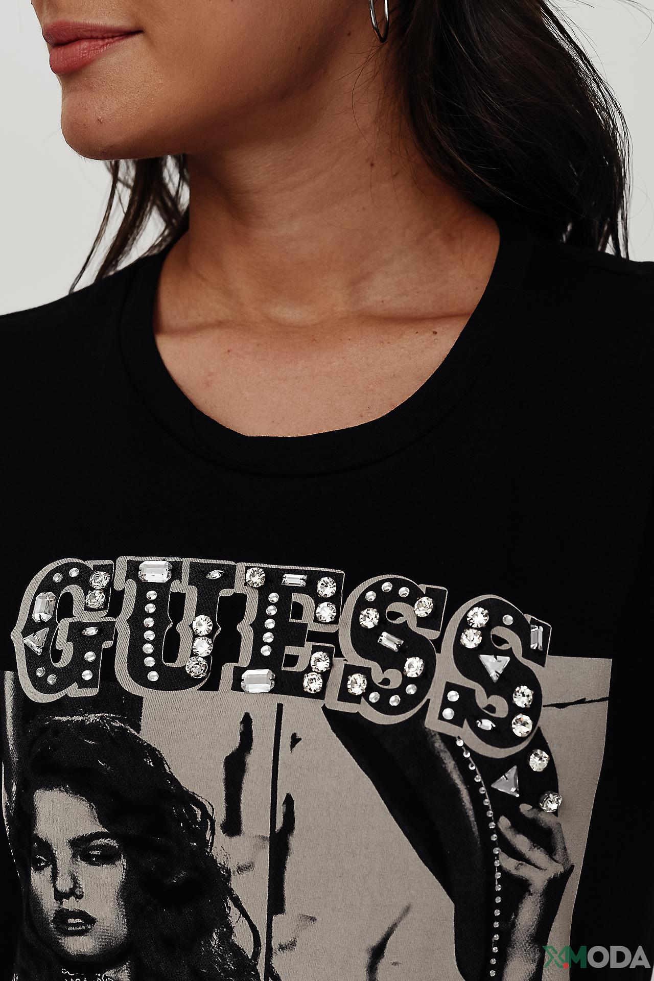 - Уникальный дизайн. Оригинальный принт с логотипом Guess и стразами привлекает внимание и подчеркивает ваш стиль.