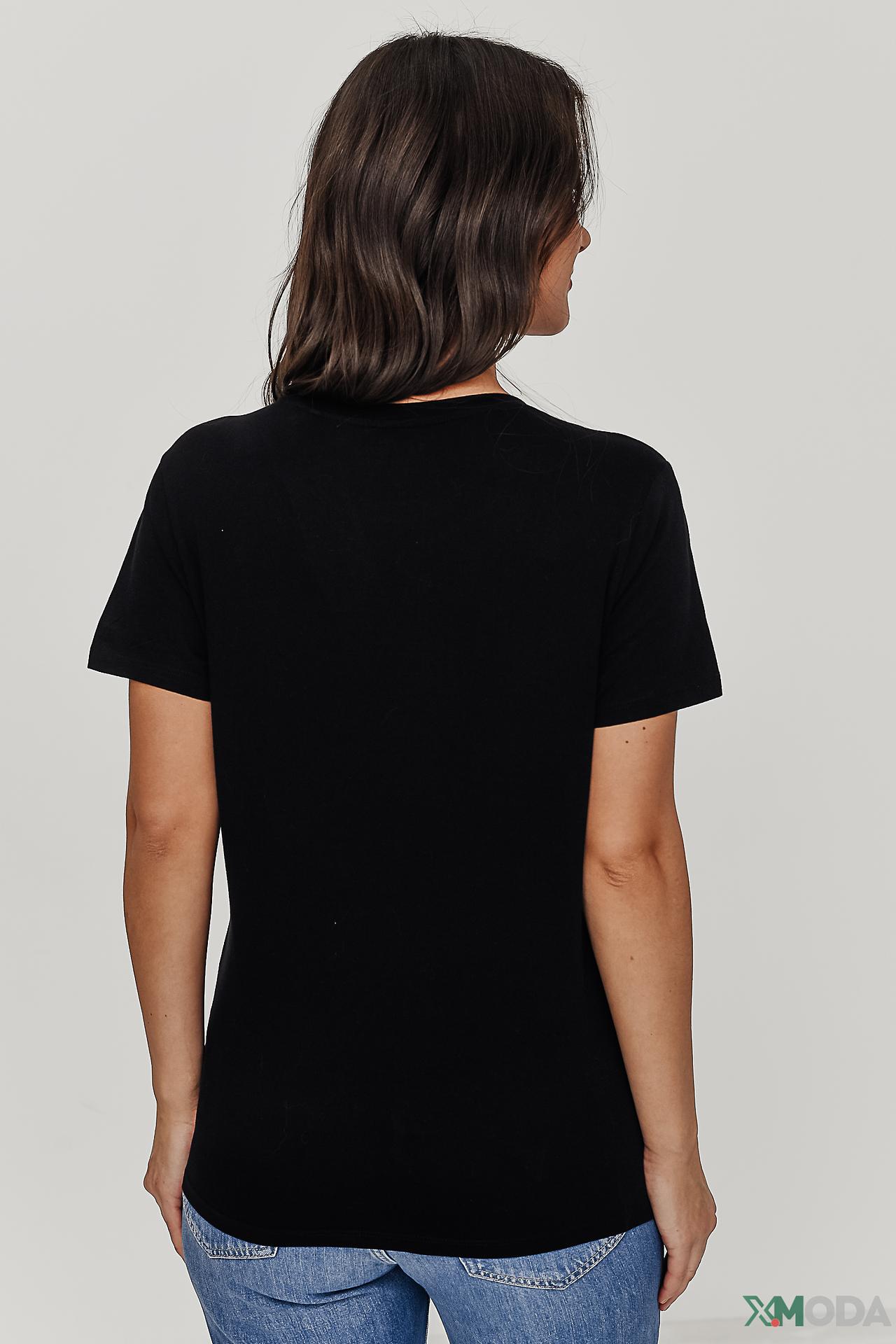 Стильная чёрная футболка Guess с оригинальным принтом станет ярким акцентом в вашем гардеробе. Изготовленная из 100% хлопка, она обеспечивает максимальный комфорт и приятна к телу. Декоративные стразы на логотипе добавляют изысканности и гламура, делая эту футболку идеальным выбором для создания модных образов.