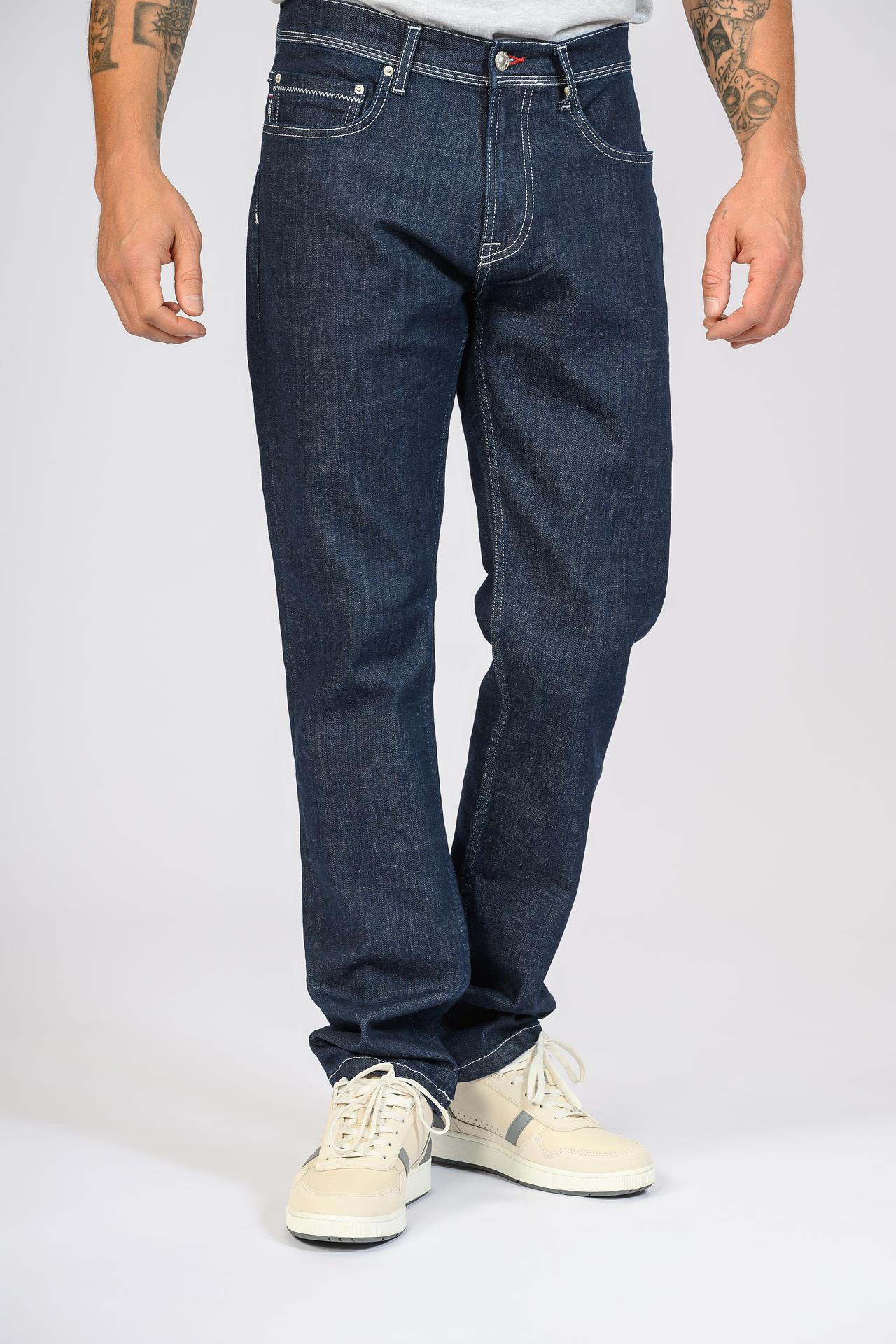 Классические мужские джинсы Hechter — идеальный выбор для современного гардероба. Эта модель выполнена из высококачественного денима, состоящего из 98% хлопка и 2% эластана, что обеспечивает превосходный комфорт и долговечность. Прямой крой и глубокий синий цвет делают эти джинсы универсальной повседневной одеждой, легко сочетающейся с любым верхом. Белая контрастная строчка и вышивка логотипа на заднем кармане добавляют уникальный акцент, подчеркивая внимание к деталям и оригинальность стиля.