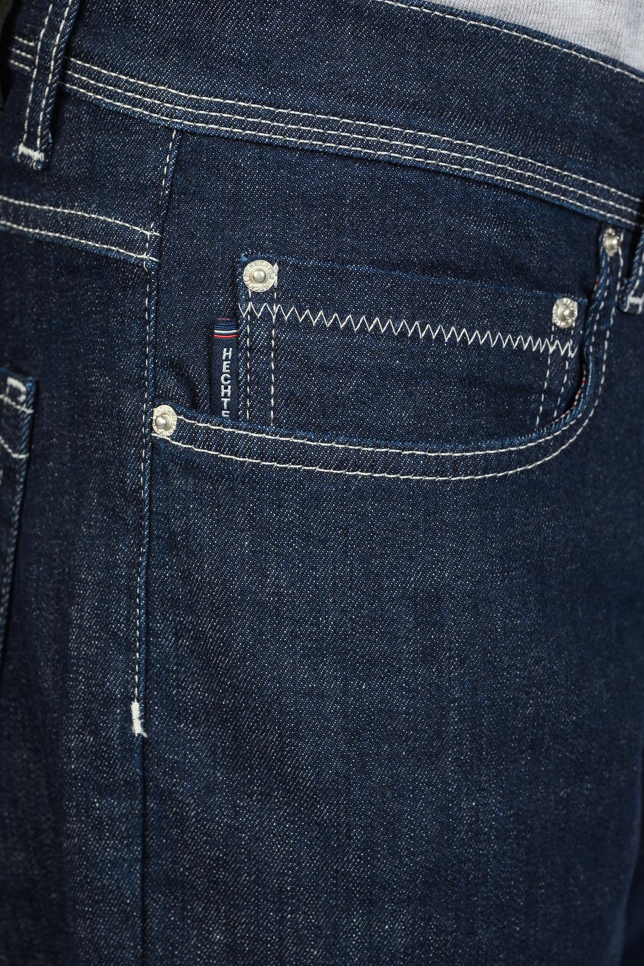 Джинсы Hechter синие с белой строчкой и вышивкой на кармане