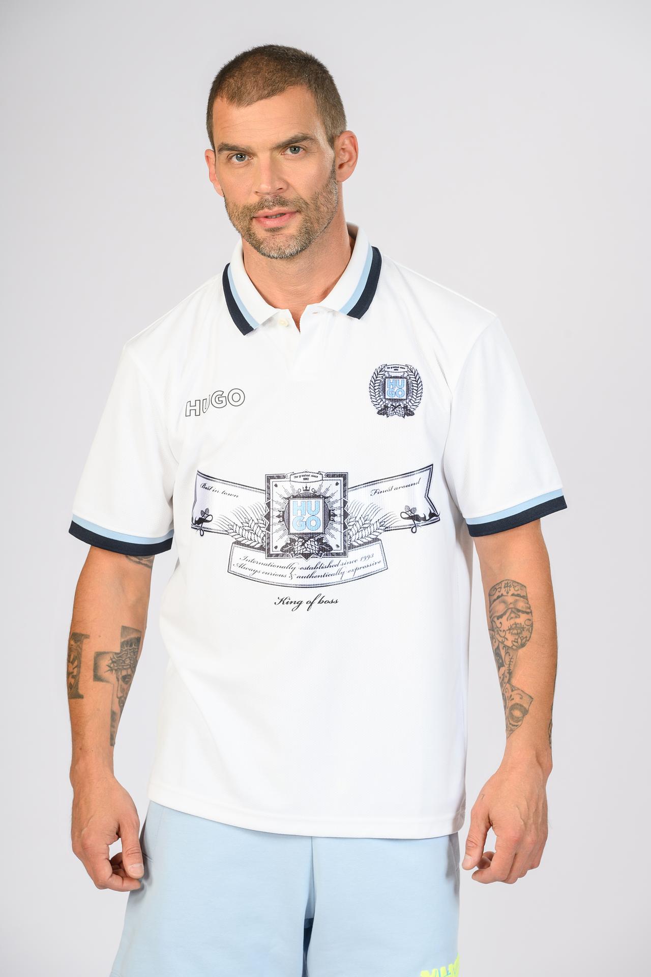 Стильное поло Hugo с коротким рукавом, выполненное из технологичного 100% полиэстера. Материал обеспечивает комфорт и свободу движений, идеален для активного образа жизни. Модель украшена оригинальным принтом, добавляющим индивидуальность и современный акцент. Это отличный выбор для создания элегантного и непринужденного образа.