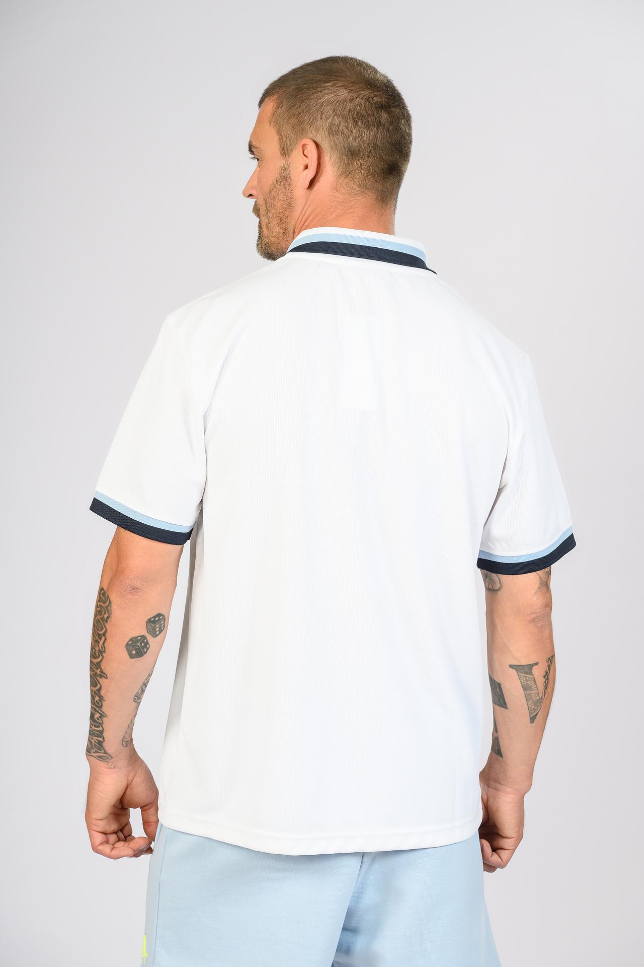 - Дизайн: Классический крой поло с короткими рукавами и отложным воротником придает элегантность. Принт на поло добавляет уникальности и делает образ запоминающимся.