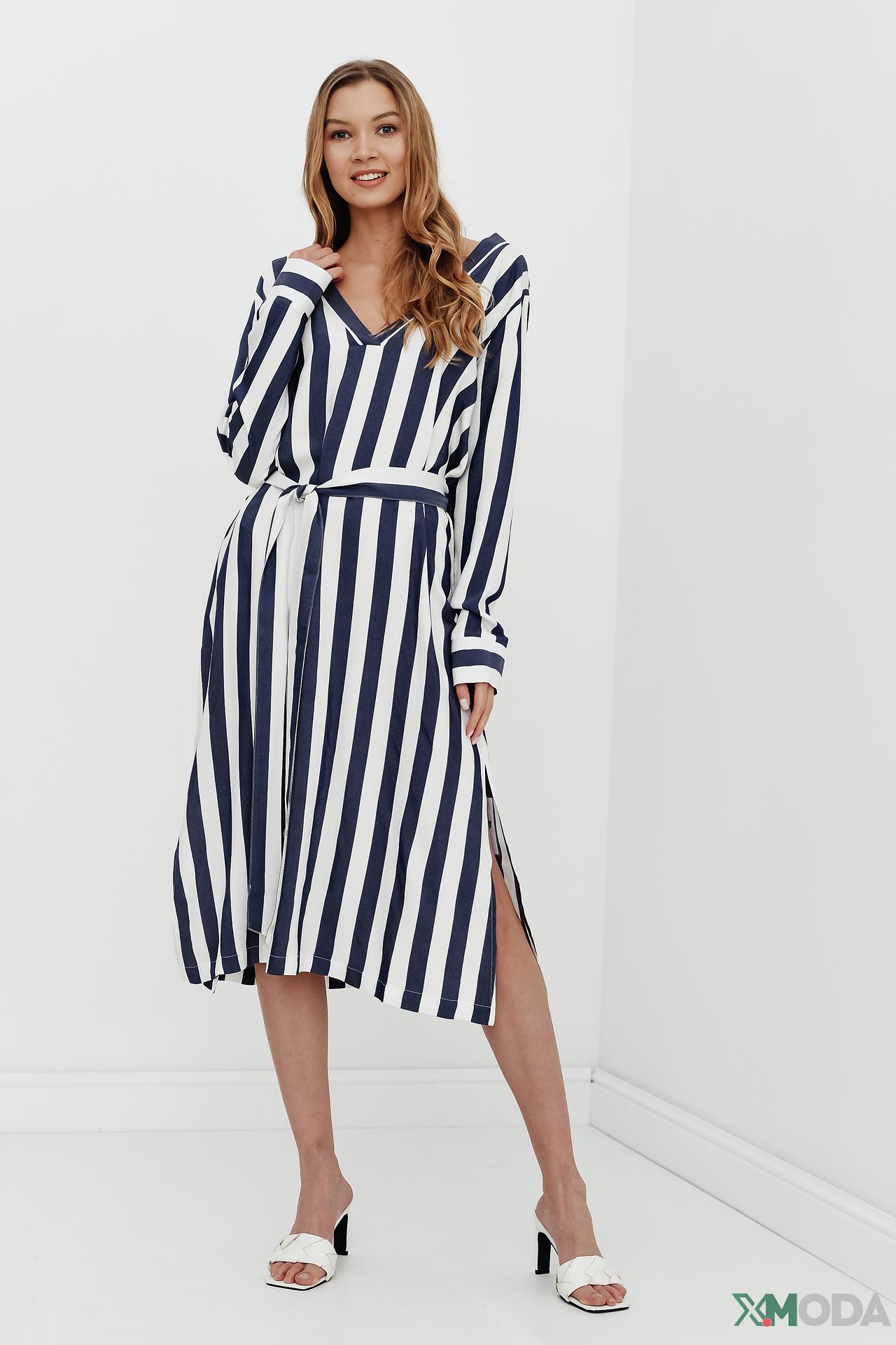 Это платье станет незаменимой вещью в вашем гардеробе благодаря своему универсальному дизайну. Модель отлично подойдет как для повседневной носки, так и для особых случаев, подчеркивая вашу индивидуальность и чувство стиля. Платье выполнено из качественного материала, который обеспечивает долговечность и приятные ощущения при носке. Полосатый принт добавляет образу свежести и динамичности.