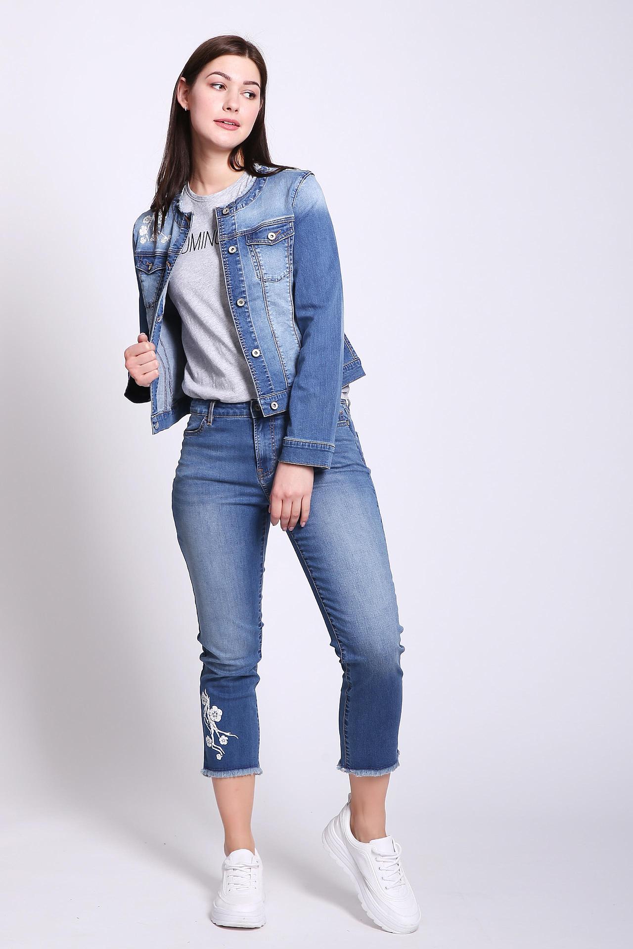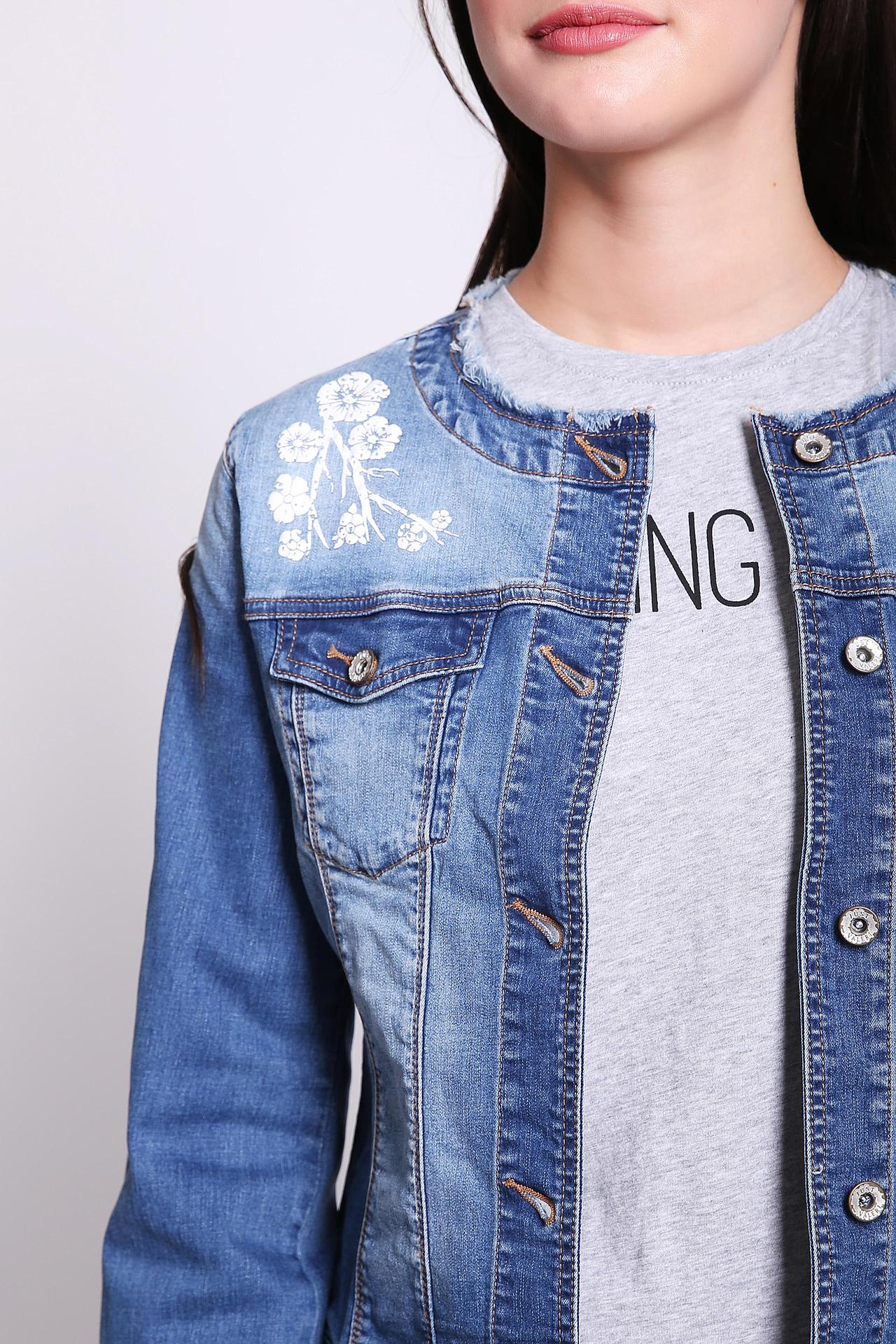 Жакет женский голубого цвета фирмы Just Valeri. Модель выполнена прямым фасоном. Изделие дополнено округлым воротом, застежка на пуговицы, втачными, длинными рукавами с манжетами на пуговицу, передними, накладными карманами с клапанами на пуговицу, задними и передними кокетками. На передней и задней части расположены рисунки. Жакет дополнен за строчёными рельефами. Все детали отстрочены двойным швом. Ткань состоит из 2% эластана, 98% хлопка. Комбинировать можно с различными джинсами.