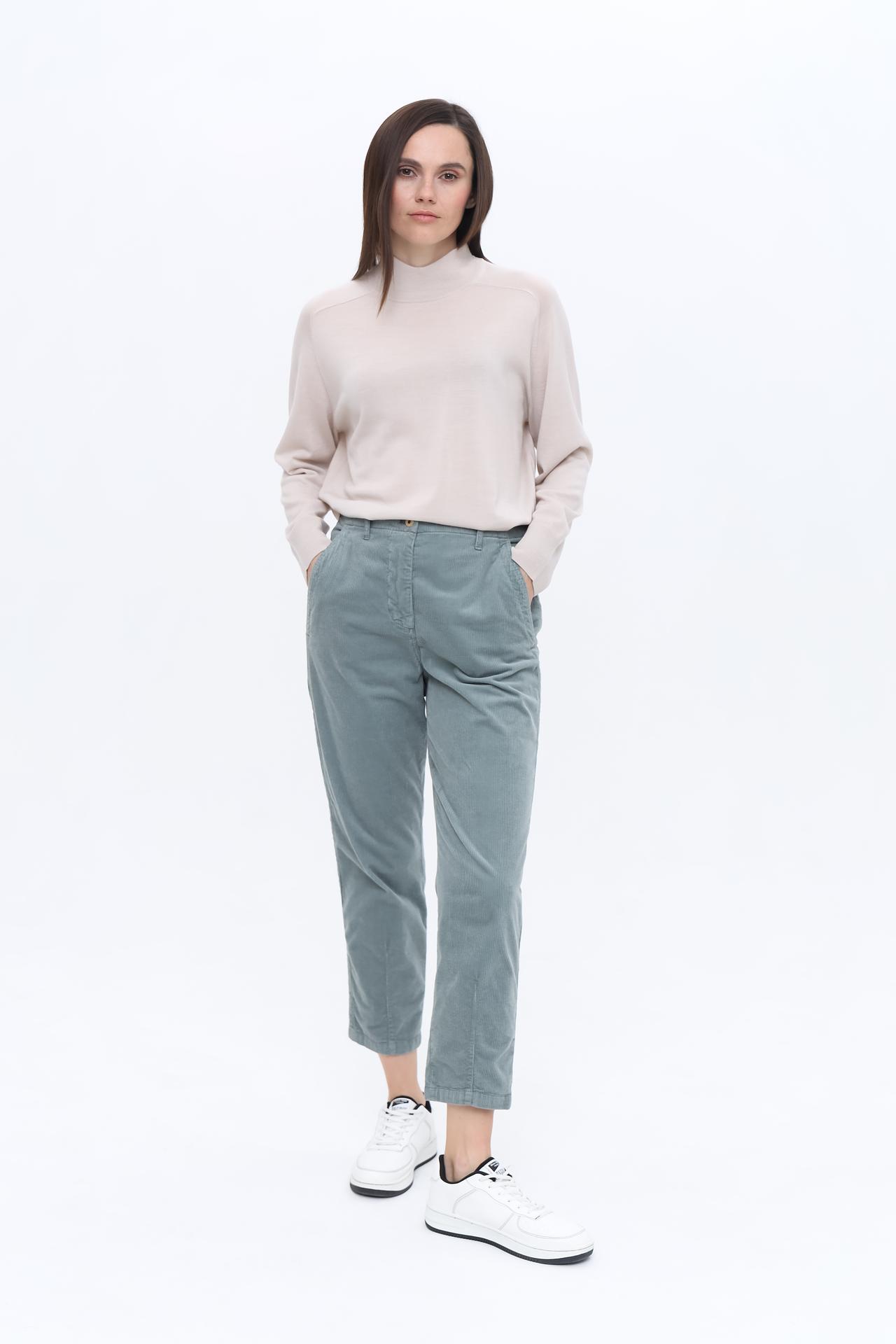 - Универсальный дизайн. Благодаря лаконичному дизайну и нейтральному цвету, джемпер легко комбинируется как с классическими брюками, так и с джинсами или юбками, создавая множество актуальных образов.