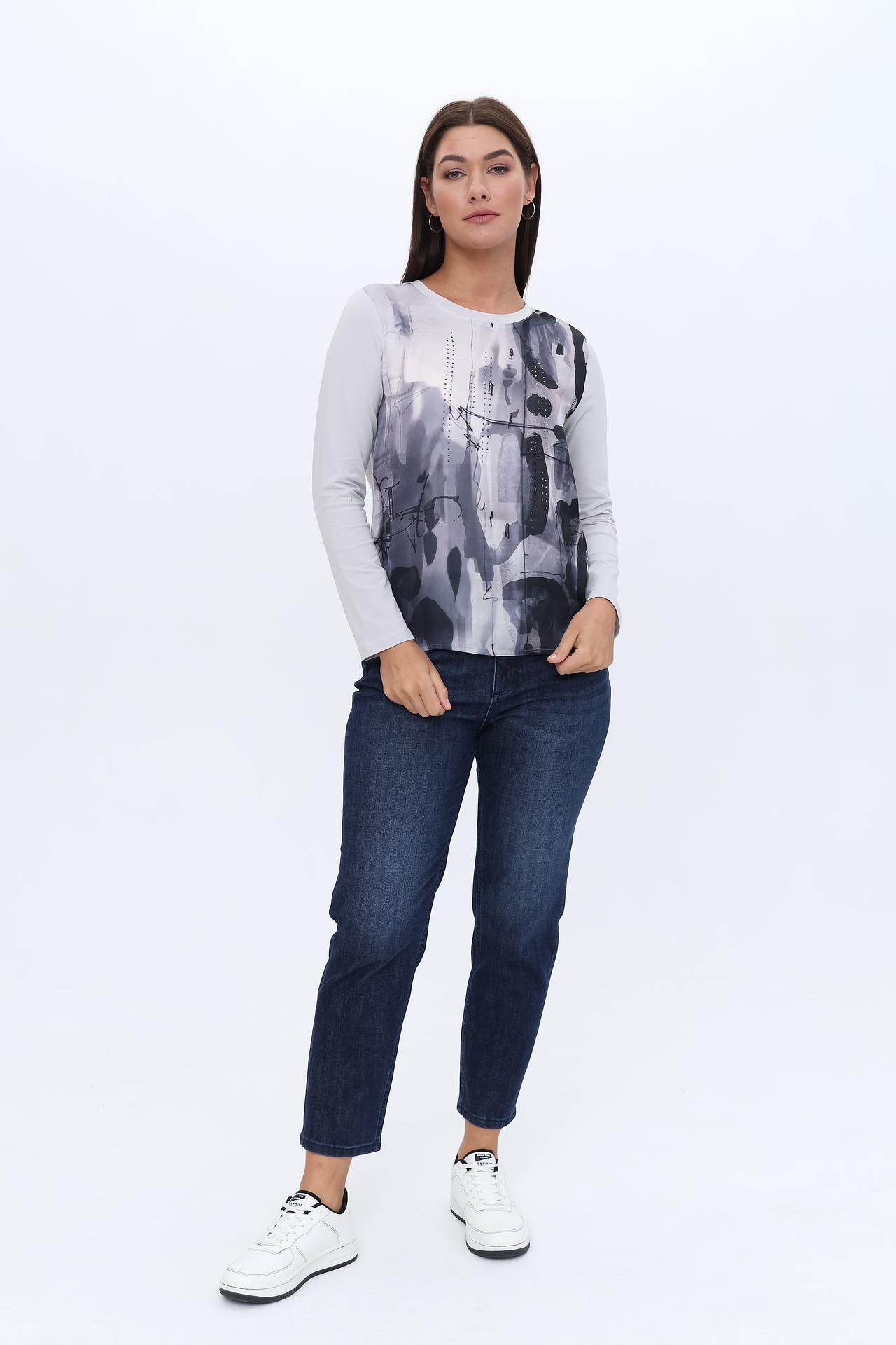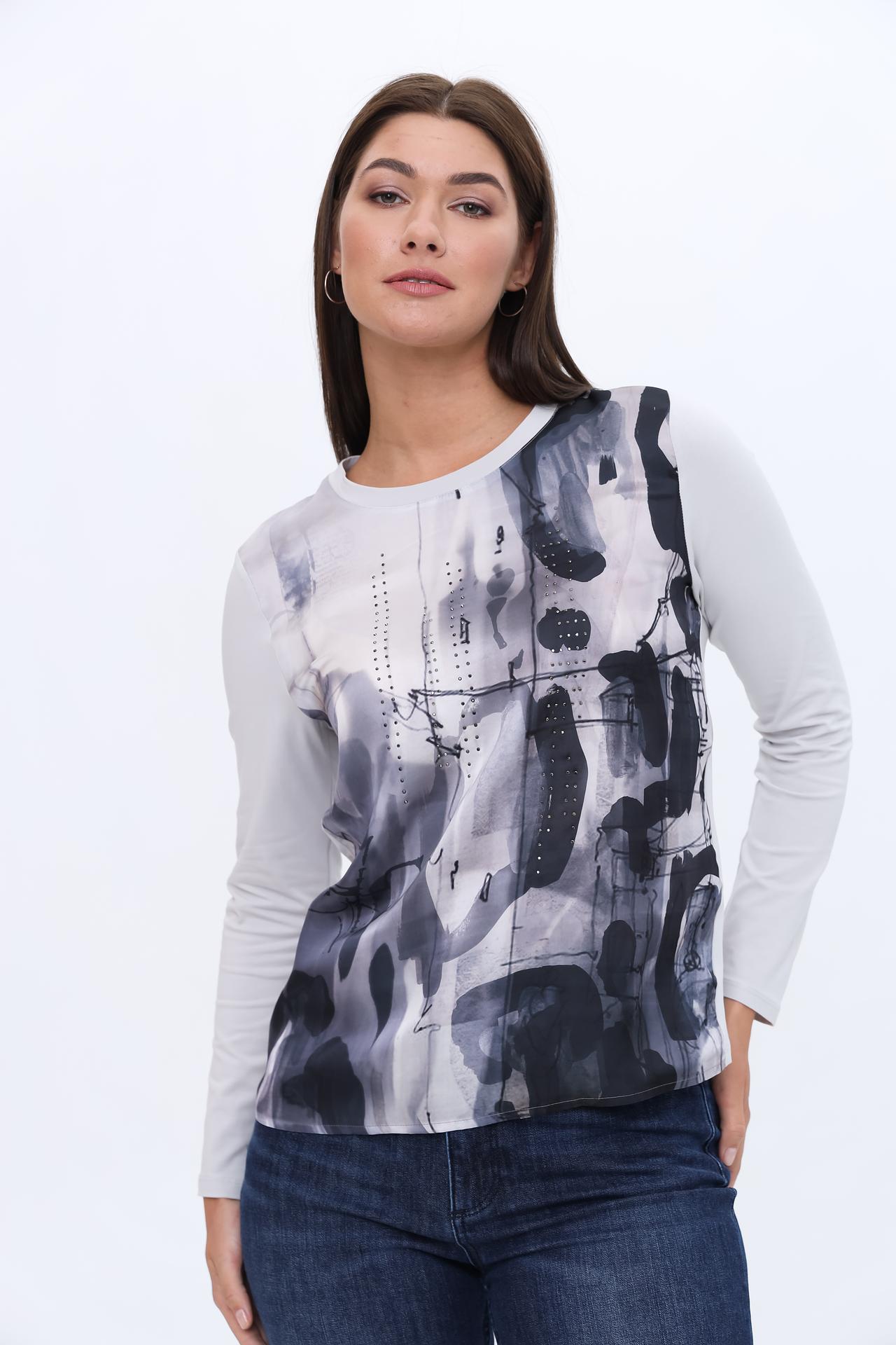 Лонгслив Lecomte Серый с абстрактным принтом и стразами