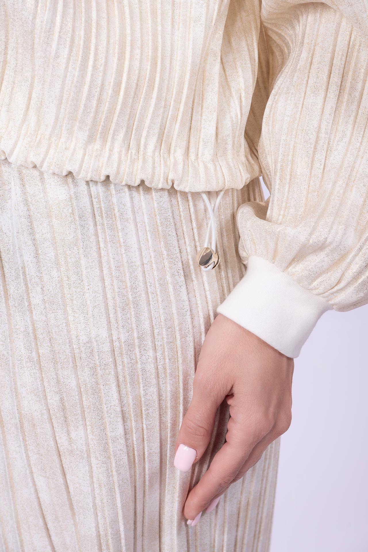 - Текстура: Плиссированная ткань придает джемперу оригинальный и современный вид.