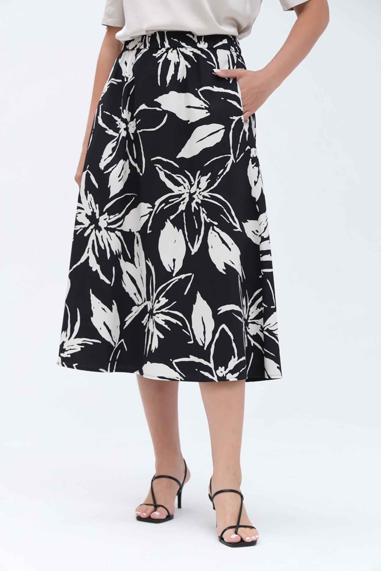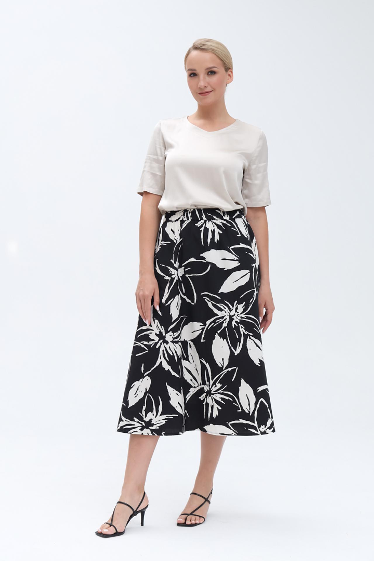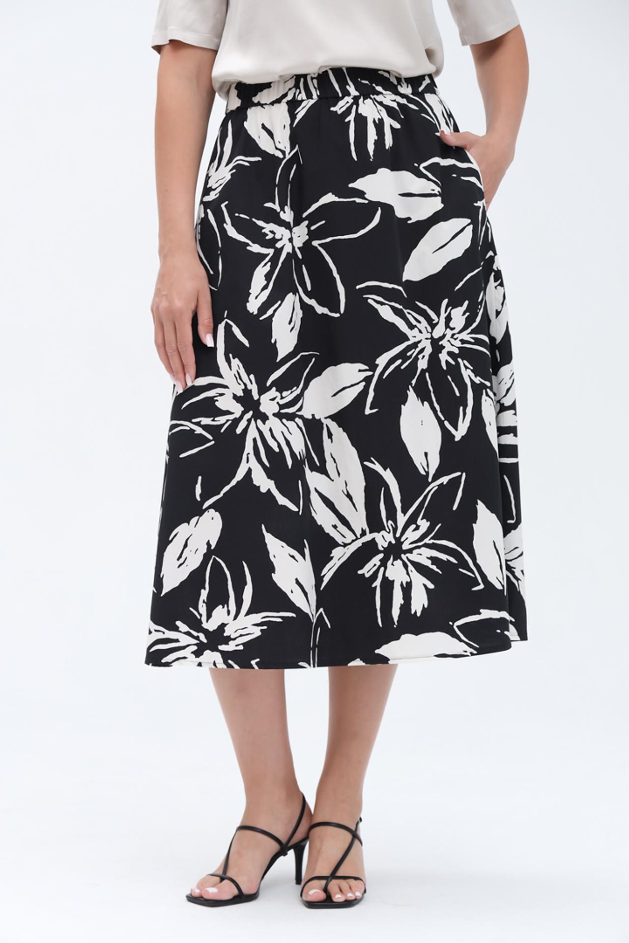 - Актуальный принт: Крупный цветочный принт добавляет образу женственности и элегантности, делая юбку заметной и стильной.