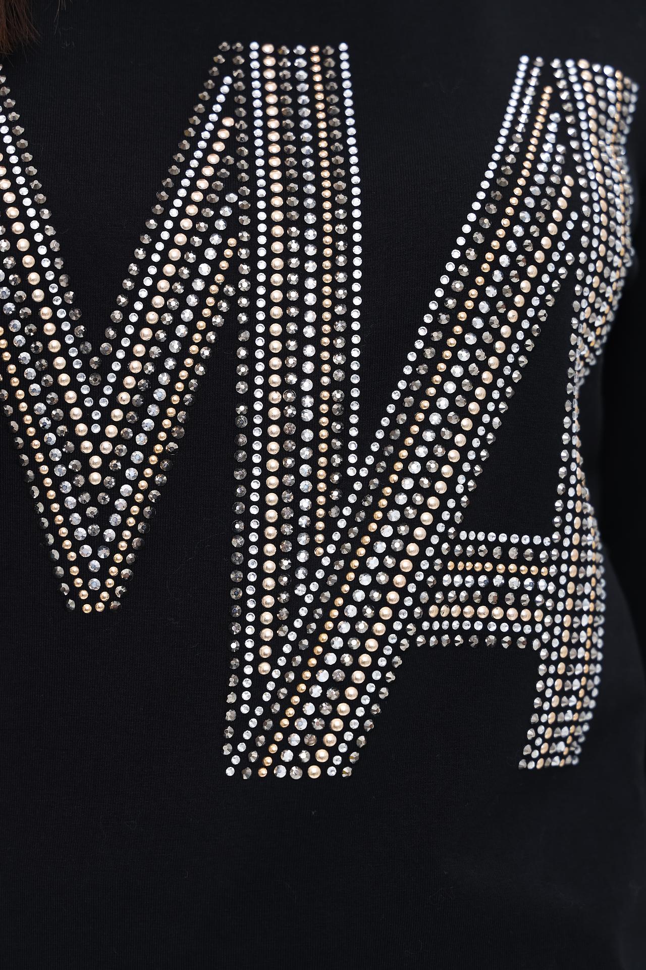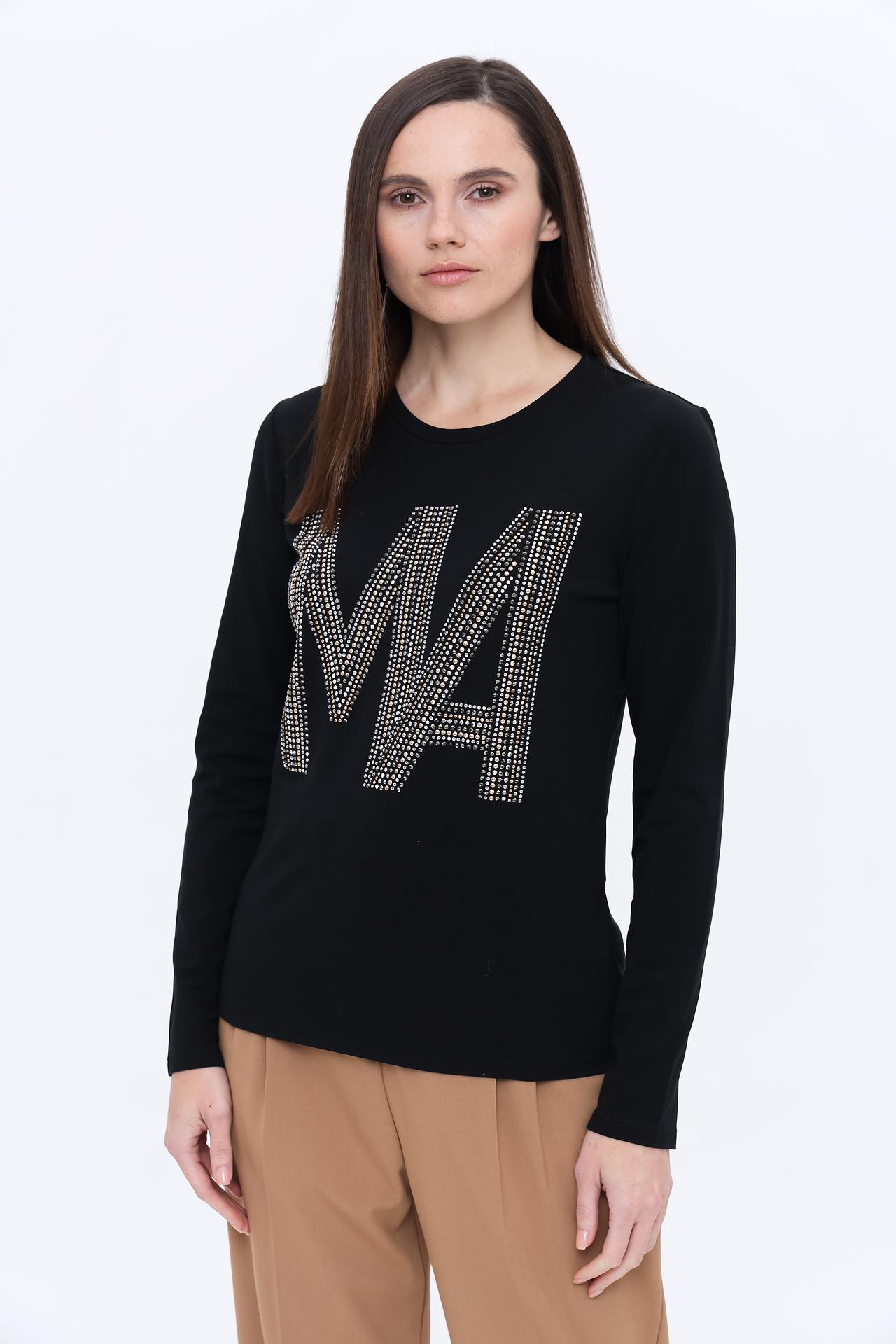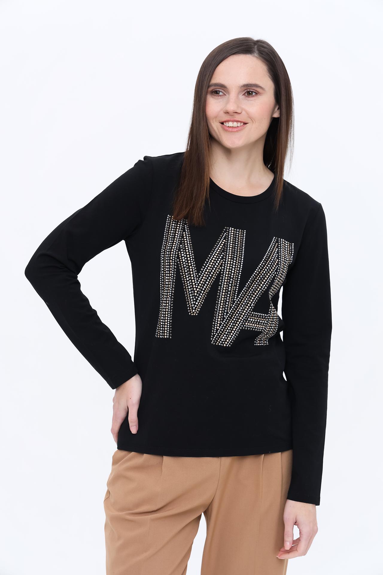 Лонгслив от Marc Aurel — это элегантная база для вашего гардероба. Модель черного цвета украшена принтом в виде логотипа бренда, выполненным из сверкающих страз. Такой дизайн добавит образу яркости и индивидуальности, подчеркивая ваш безупречный вкус. Лонгслив идеально подойдет как для повседневных образов, так и для вечерних выходов, легко сочетаясь с различными элементами одежды.