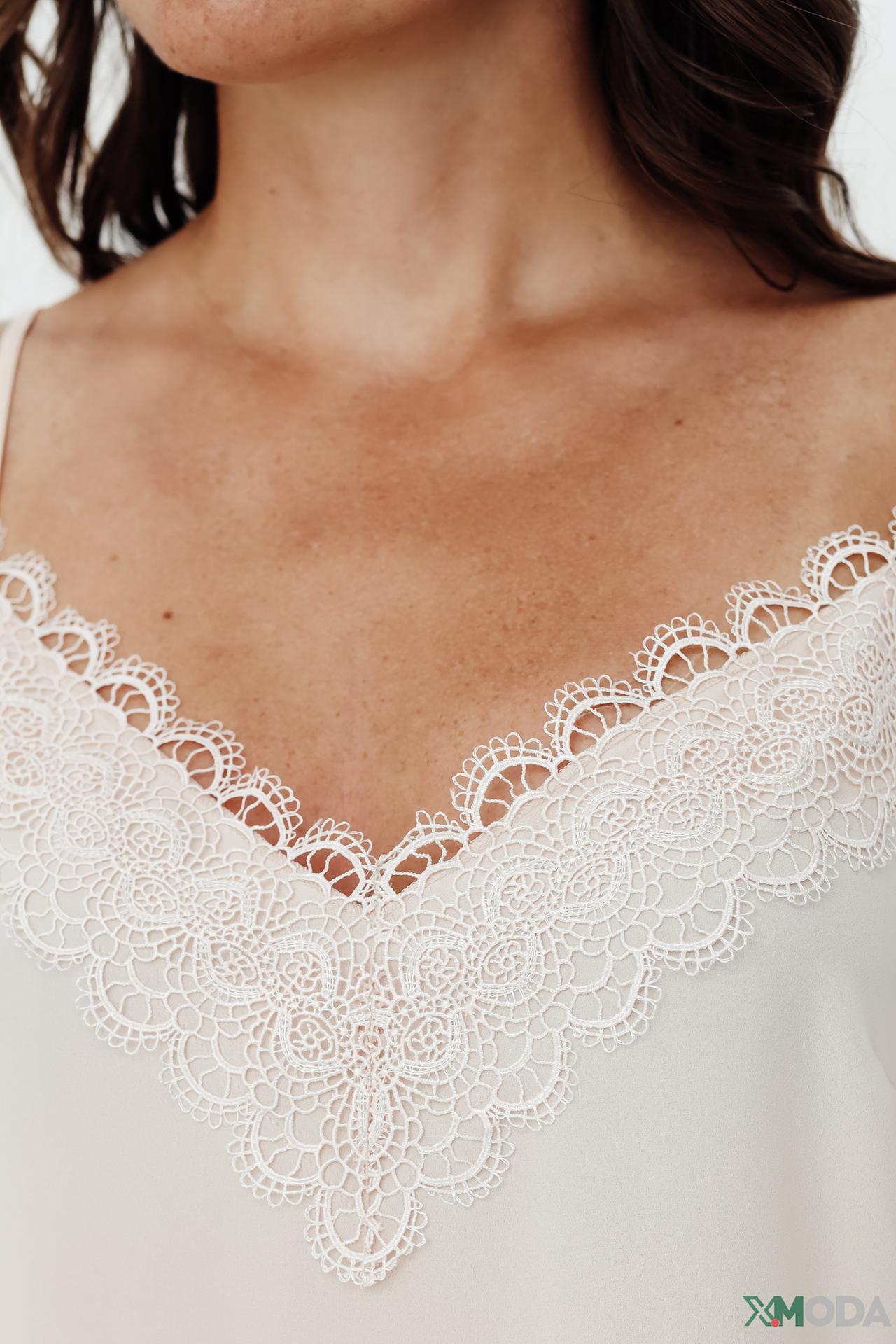 Нежный бежевый цвет подчеркивает вашу естественную красоту, а кружевная отделка добавляет изысканности и шарма. Этот топ станет прекрасным дополнением к вашему гардеробу, подходящим как для особых случаев, так и для повседневной носки. Благодаря своему универсальному дизайну, он легко сочетается с различными элементами одежды, позволяя создавать разнообразные стильные образы.