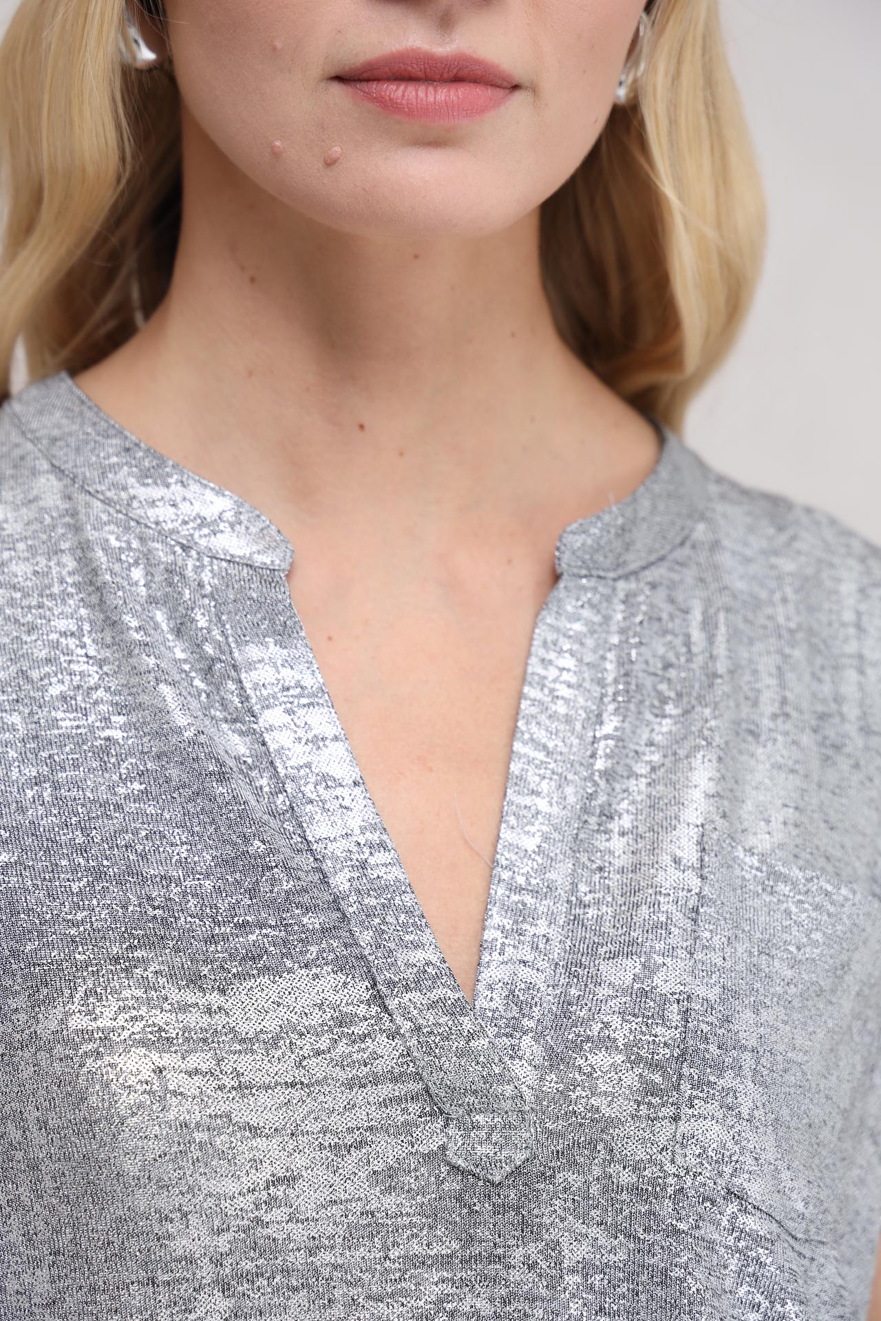 Элегантный V-образный вырез визуально удлиняет шею, создавая изысканный образ. Блуза станет прекрасным дополнением к вашему гардеробу, подходящим как для повседневной носки, так и для особых мероприятий.