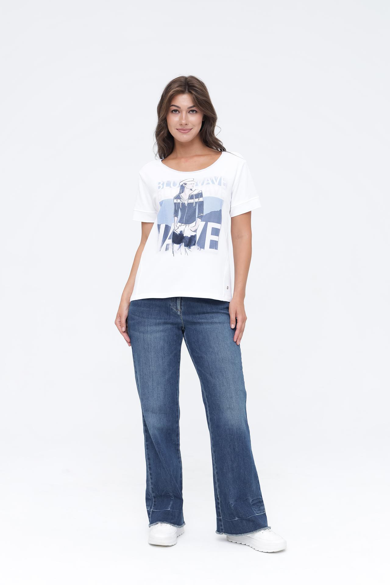 Белая футболка с оригинальным принтом станет ярким акцентом вашего образа.