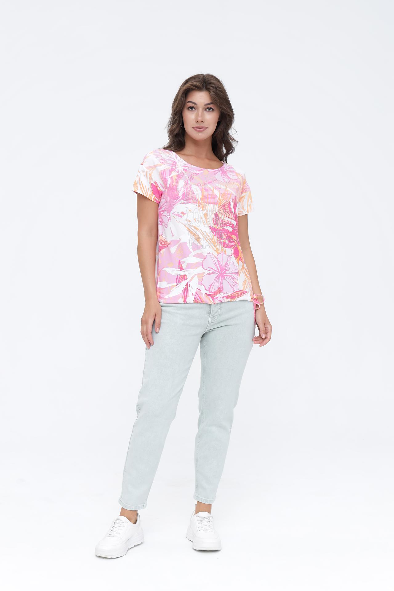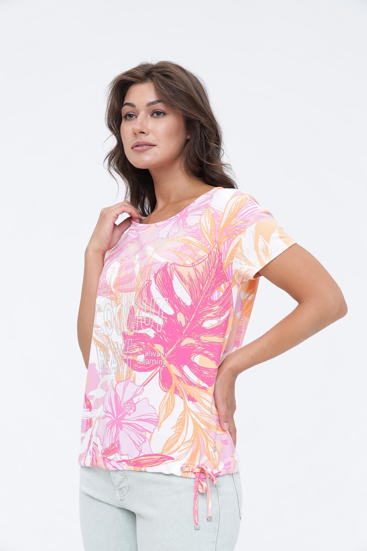 Изящная футболка от Monari с ярким цветочным принтом станет прекрасным дополнением вашего летнего гардероба. Комфортный и стильный дизайн, а также мягкая ткань премиального качества обеспечивают удобство в течение всего дня. Кулиска по низу футболки позволяет регулировать посадку и создавать различные силуэты.