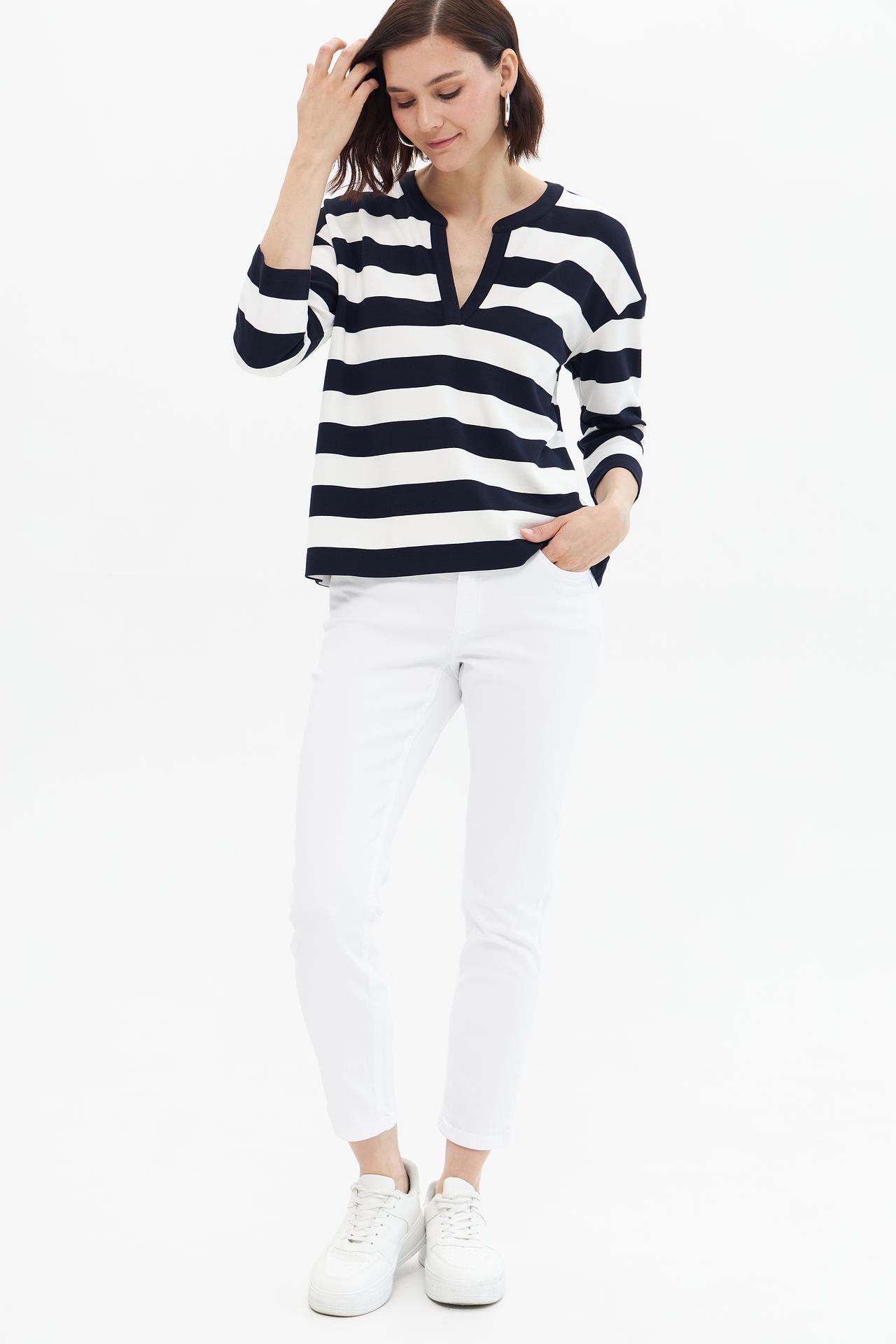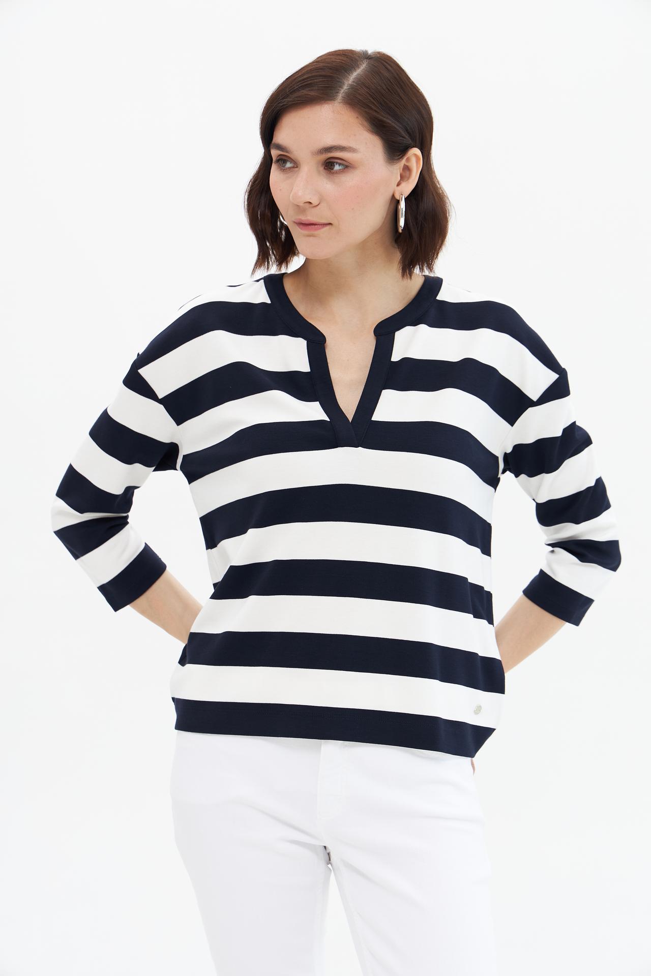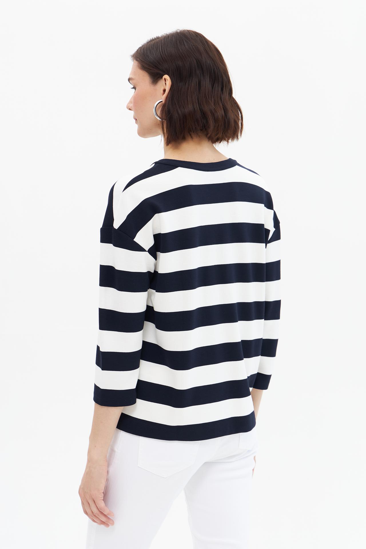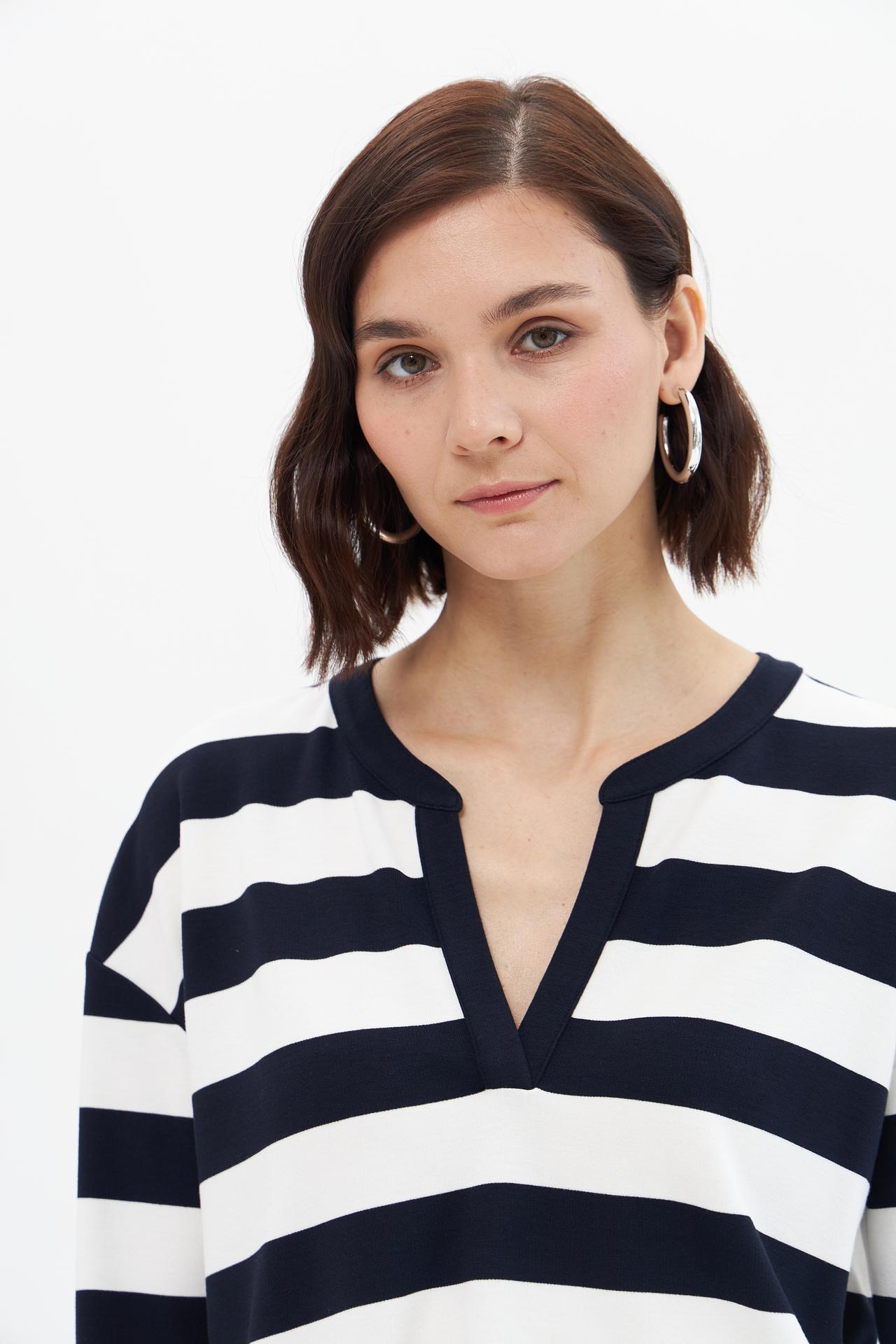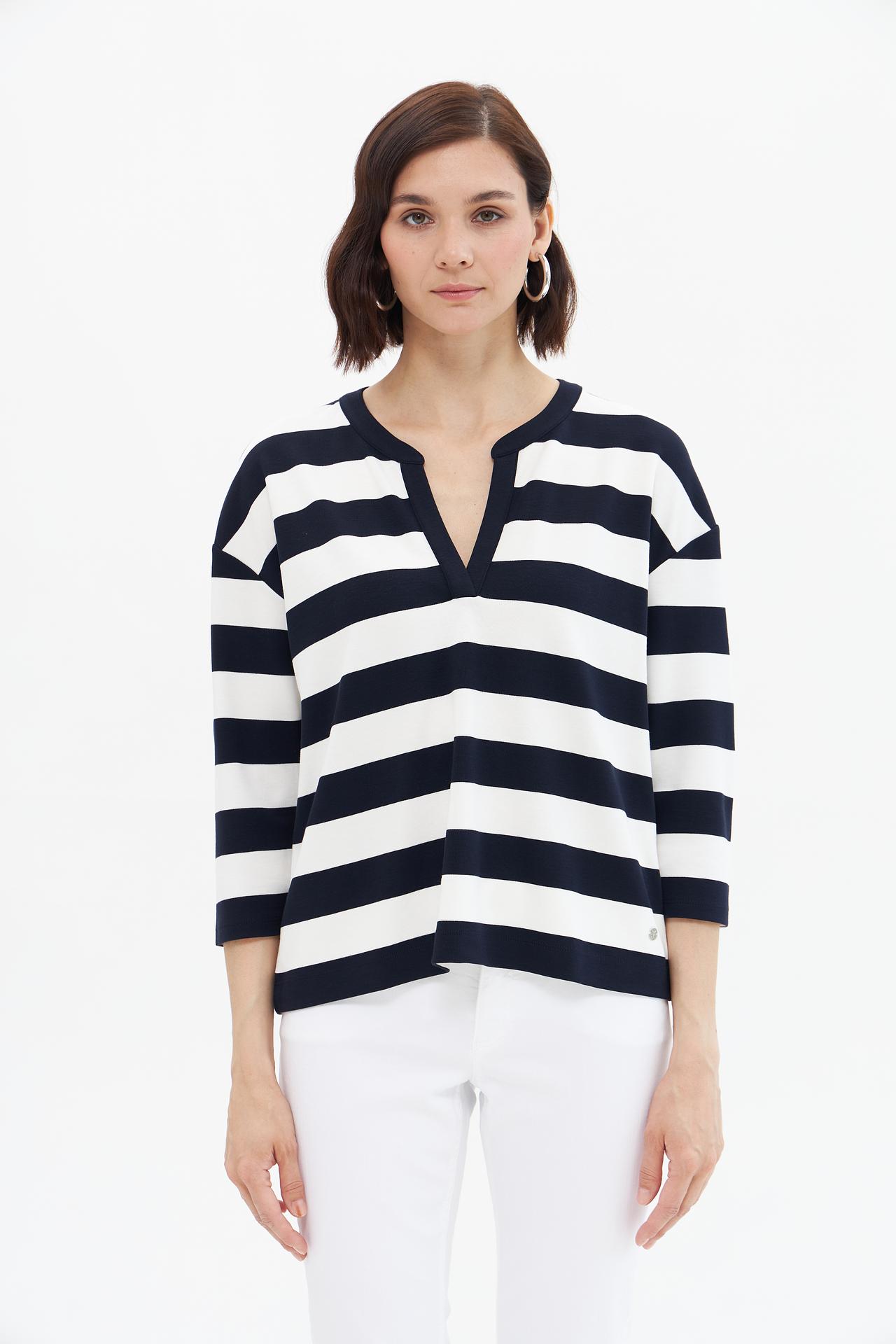 - Универсальный дизайн. Полосатый принт делает этот лонгслив идеальным компаньоном для различных стилей.