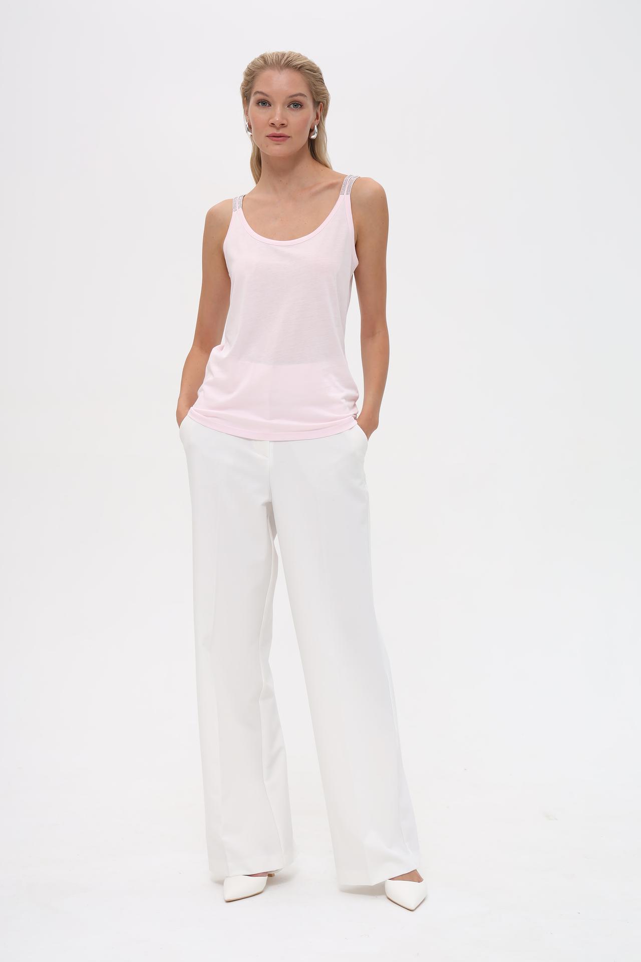 Обратите внимание на изящные бретели, украшенные декоративными элементами, которые добавляют изюминку и делают этот топ особенным. Этот топ станет незаменимой вещью в вашем гардеробе.