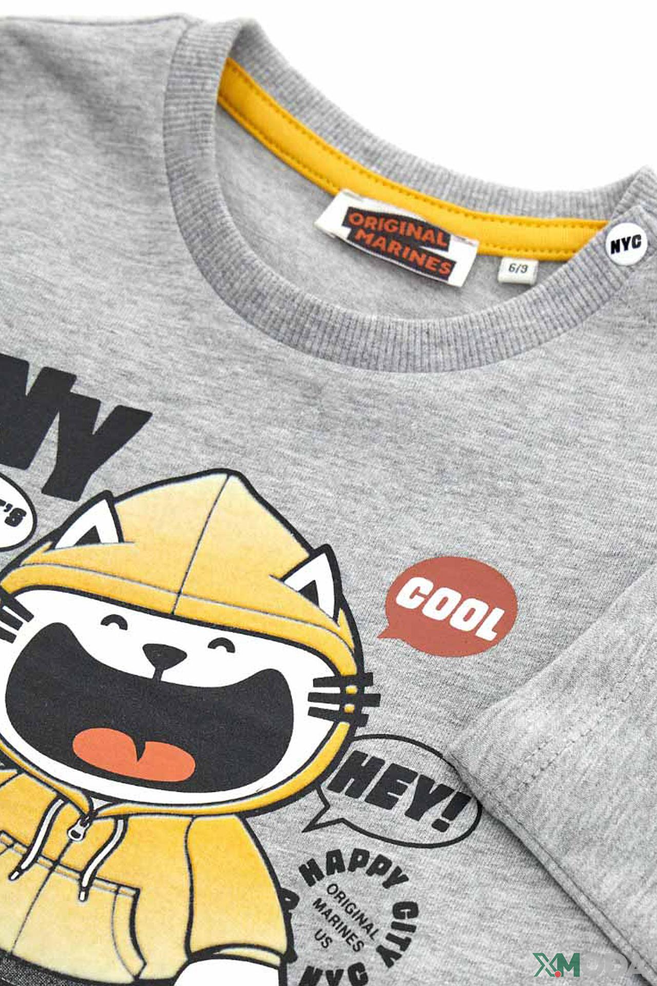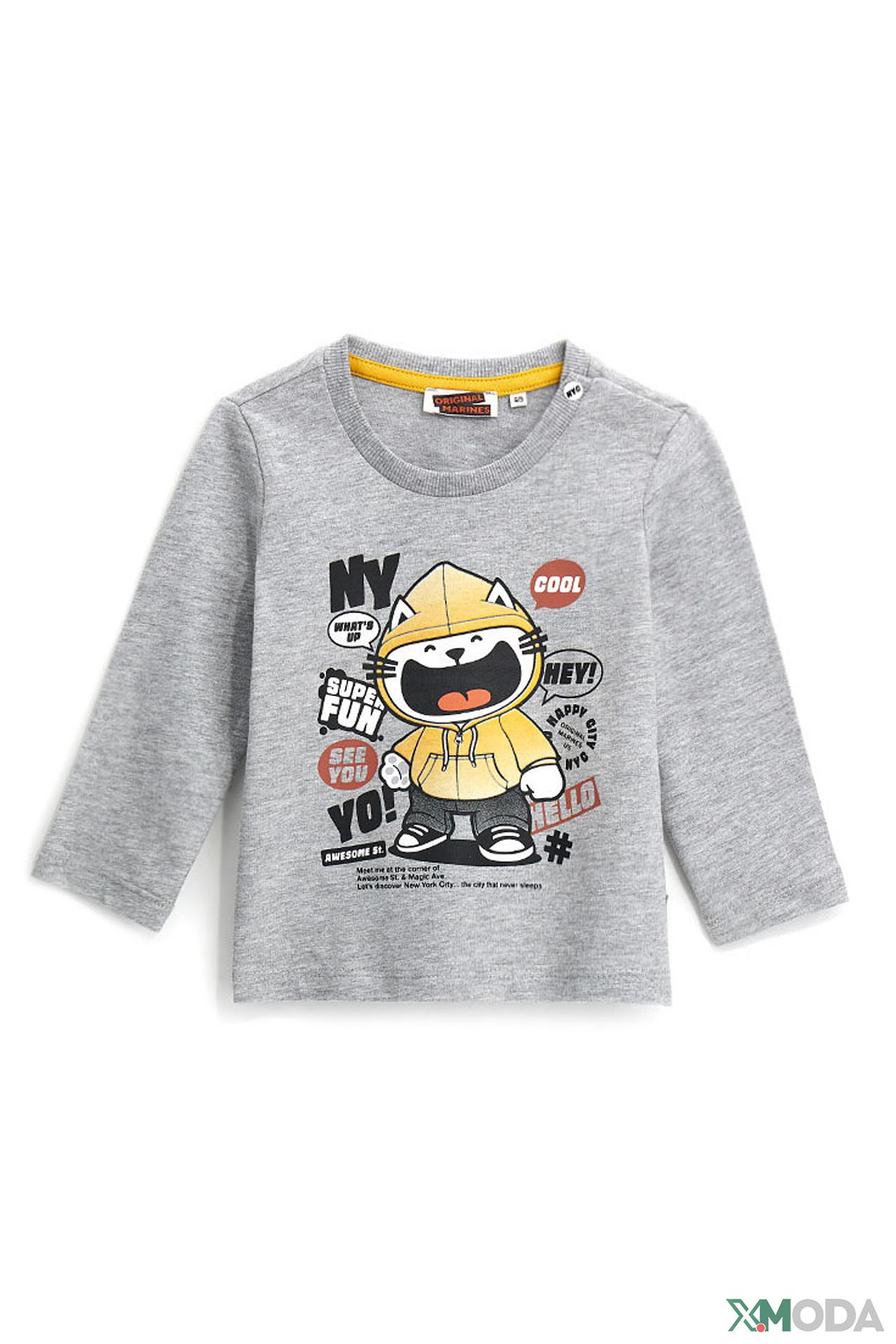 Стильная серая футболка Original Marines – отличный выбор для активных мальчиков. Изготовленная из 100% хлопка, она обеспечивает максимальный комфорт и позволяет коже дышать. Оригинальный принт с мультяшным персонажем добавит ярких красок в гардероб вашего ребенка.