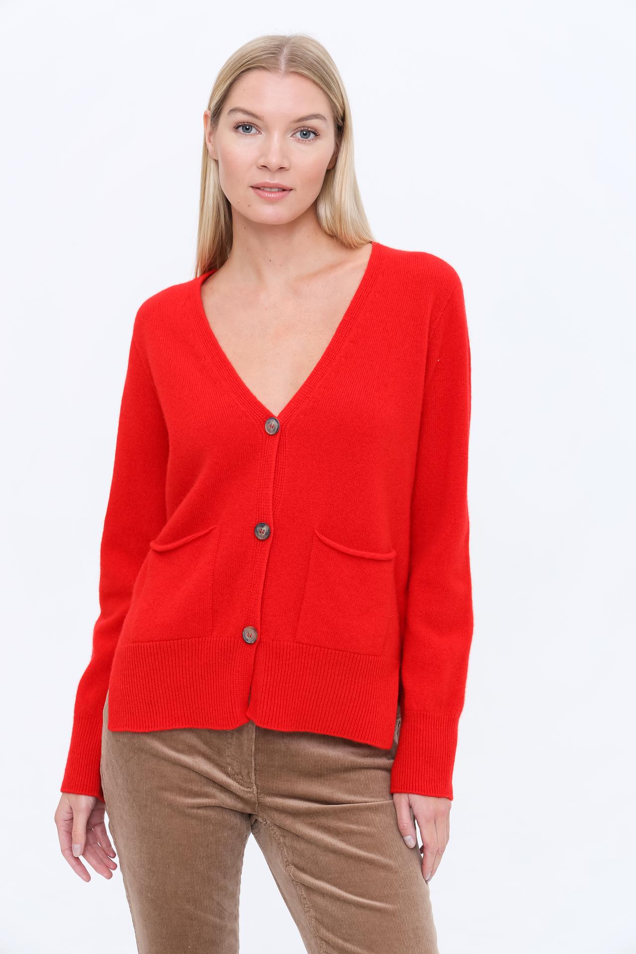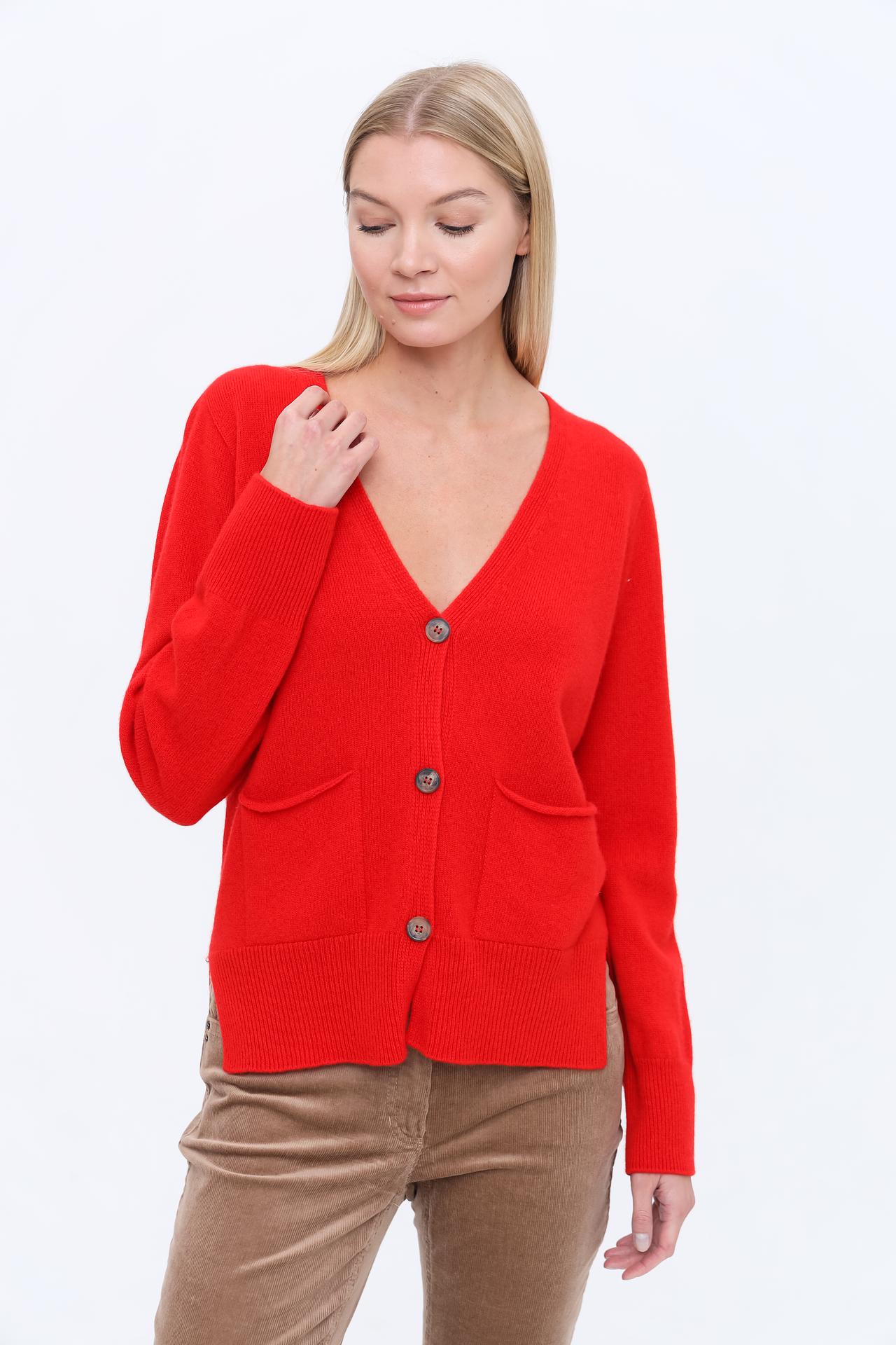 Кардиган Oui Красный с пуговицами и накладными карманами