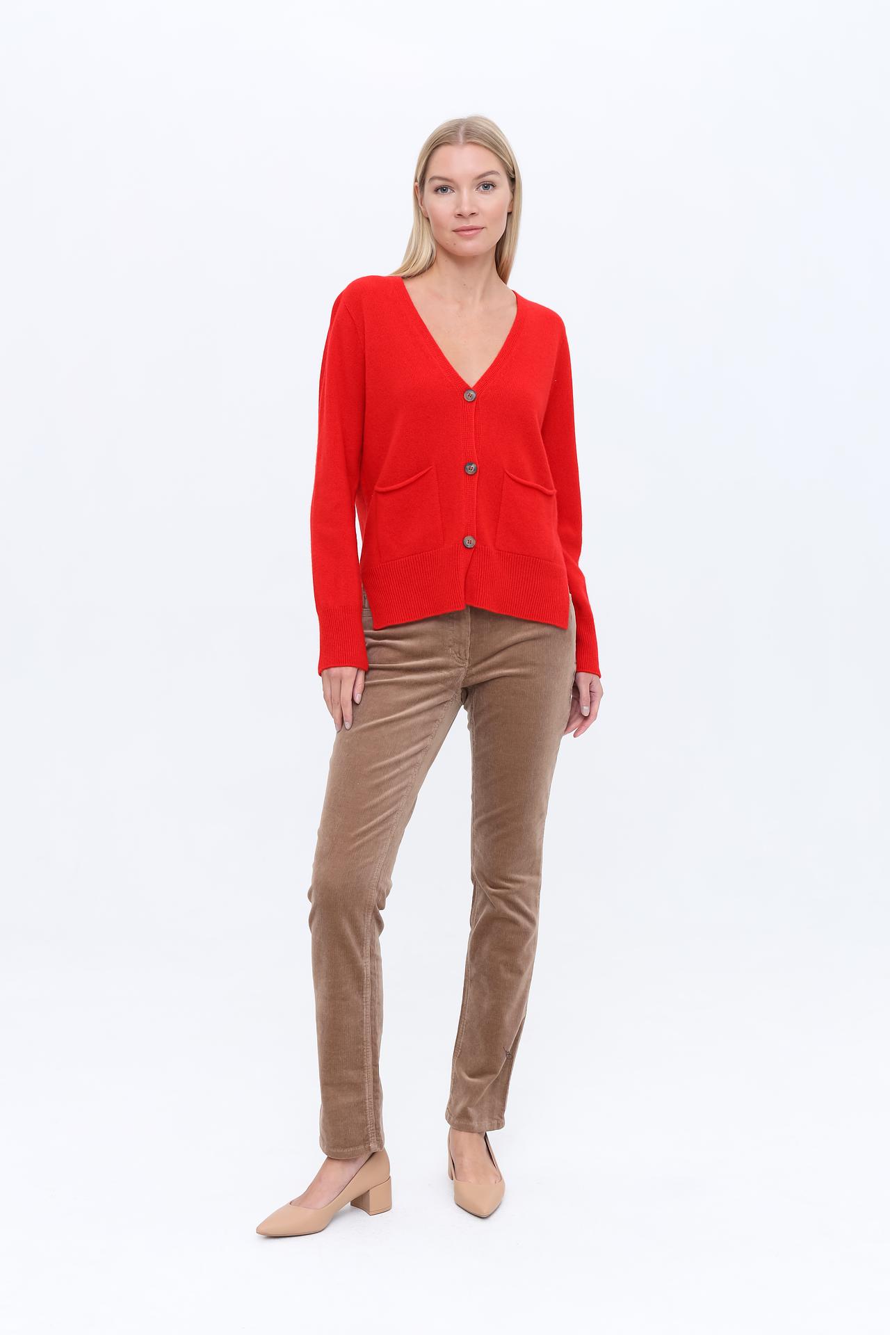 - Универсальность: Красный кардиган подходит для создания как повседневных, так и более нарядных ансамблей. Его можно носить как самостоятельный верх, так и в качестве дополнительного слоя поверх блузок или топов.