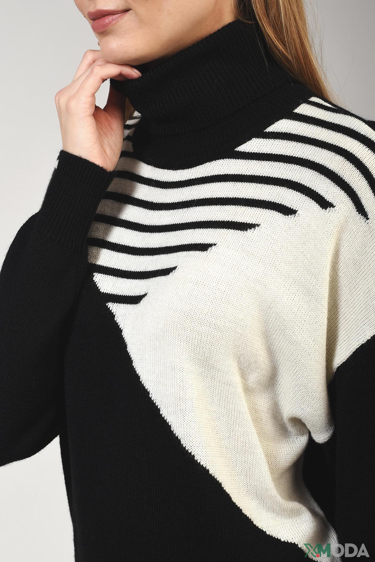 Водолазка Penny Black – стильное и уютное дополнение к вашему гардеробу. Мягкий трикотаж, в составе которого шерсть и альпака, согреет в прохладную погоду и подарит ощущение комфорта. Оригинальный геометрический дизайн с контрастными вставками добавит образу индивидуальности и современности.