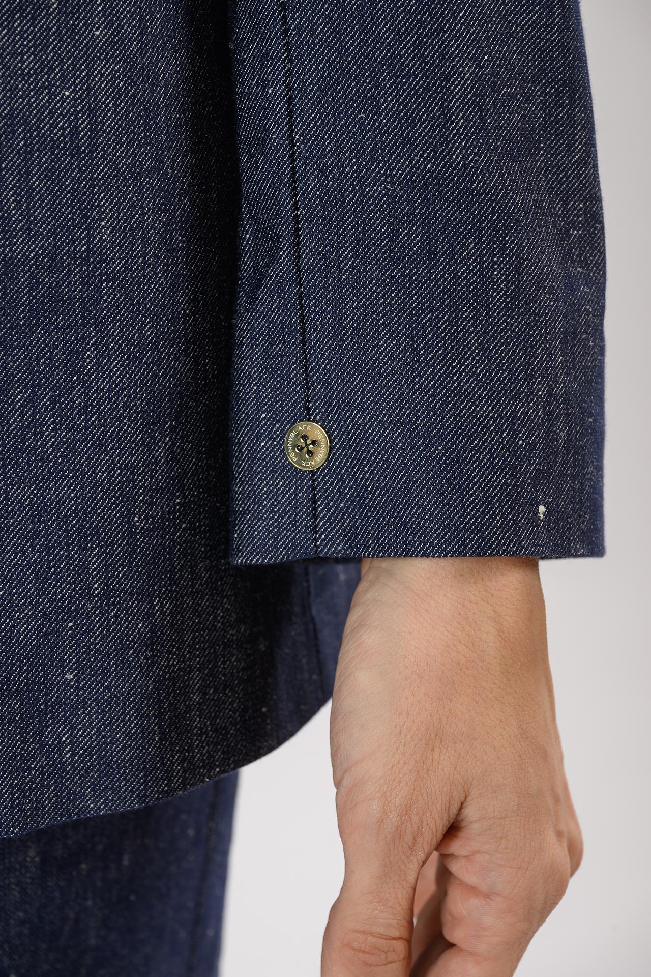 - Натуральный состав ткани: Сочетание хлопка и льна обеспечивает комфорт и воздухопроницаемость, а эластан добавляет эластичность для идеальной посадки.