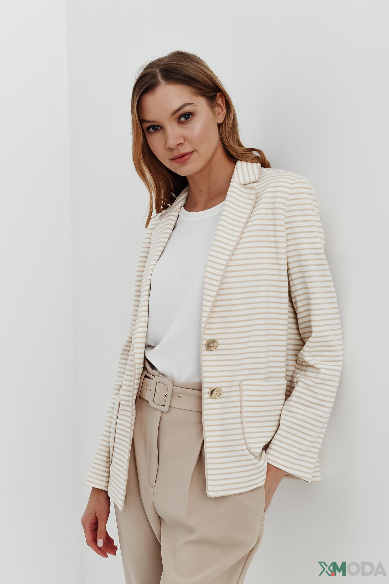 Жакет Penny Black в полоску – воплощение элегантности и комфорта. Классический крой и приятная цветовая гамма делают его идеальным дополнением к любому образу. Этот жакет подойдет как для деловых встреч, так и для повседневных прогулок, добавляя вашему стилю изысканности.