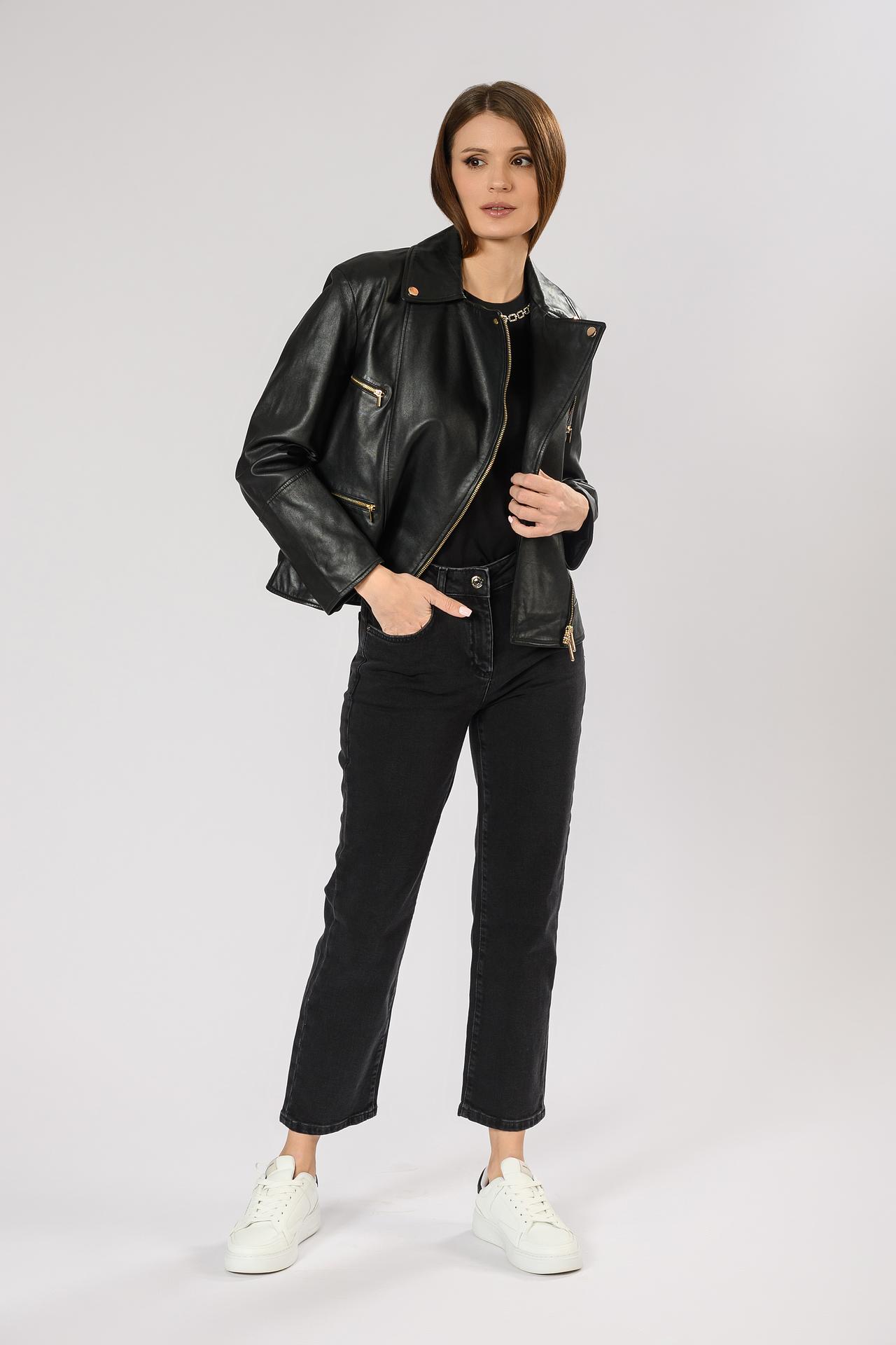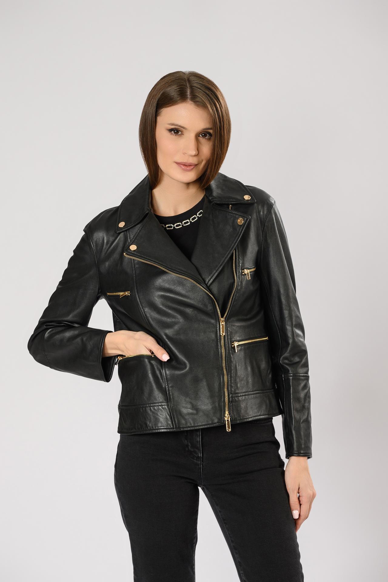 - Дизайн: Модель отличается актуальным кроем и детализацией, характерной для классических кожаных жакетов. Асимметричная молния и отложной воротник создают эффектный силуэт.