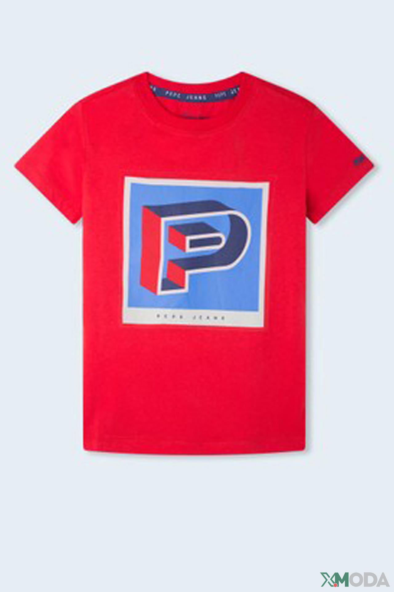Красная футболка Pepe Jeans London для мальчика с принтом