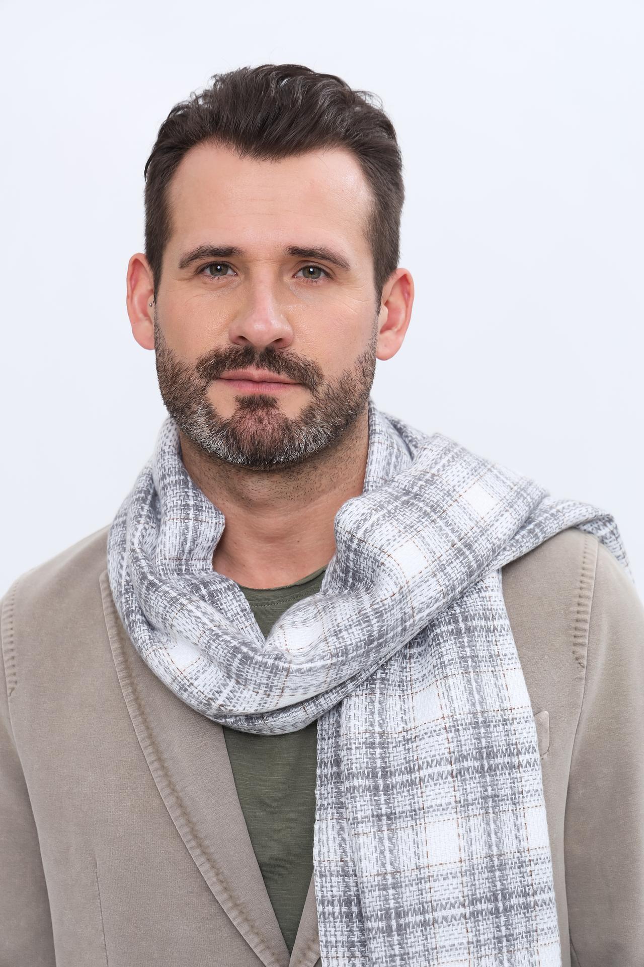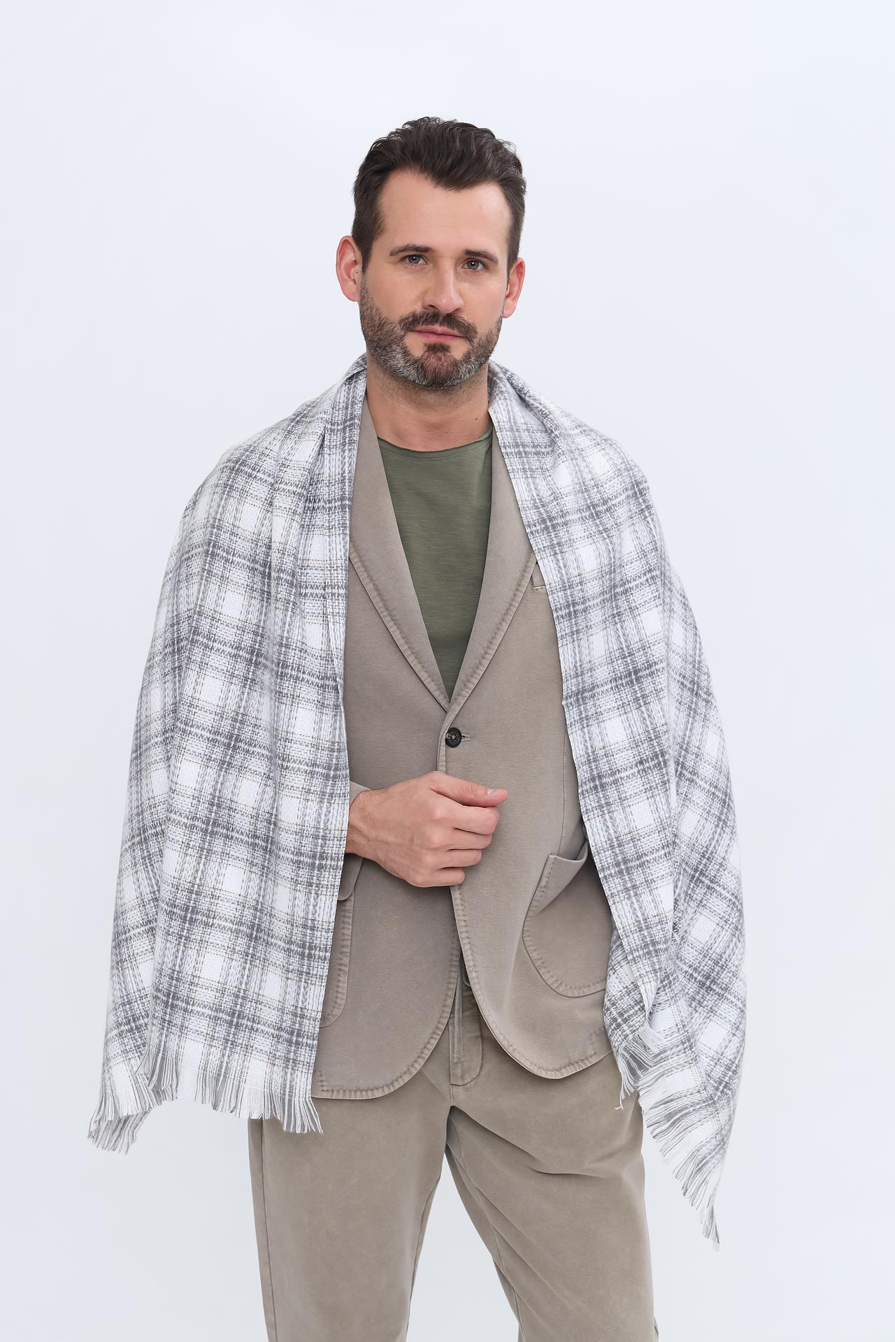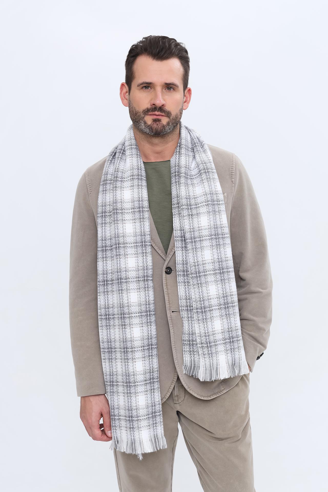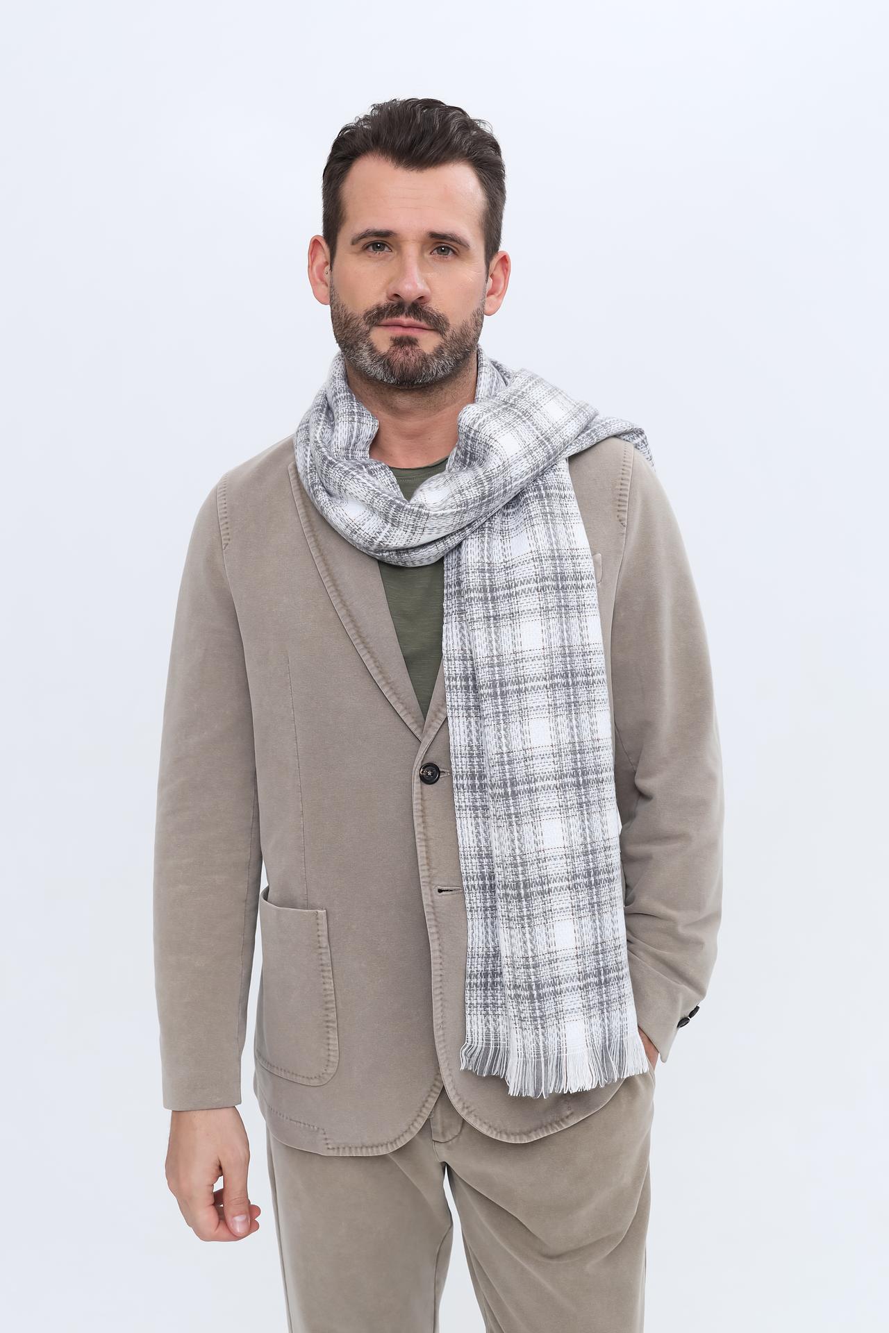 - Универсальный дизайн. Классический клетчатый принт в белых и серых тонах позволяет легко комбинировать шарф с различными стилями одежды – от делового до повседневного, создавая модные образы.