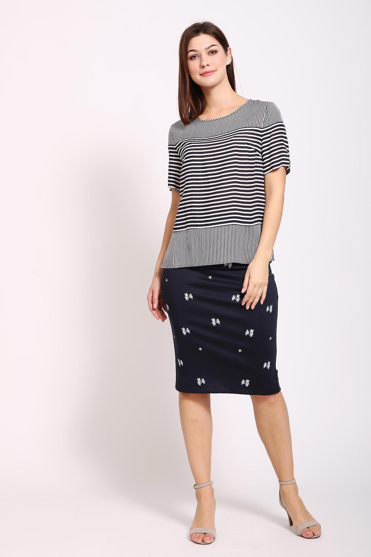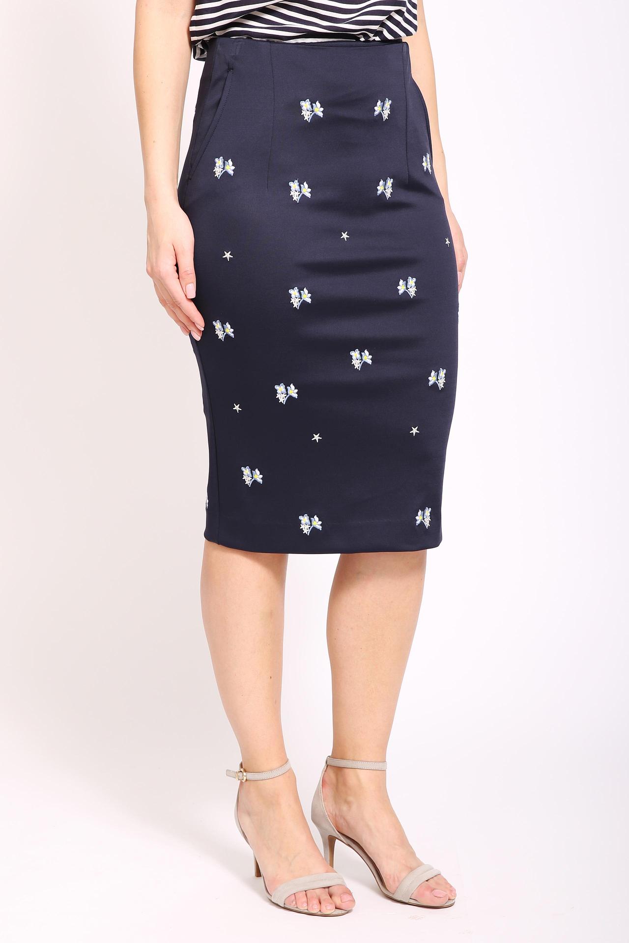 Юбка-карандаш Pezzo тёмно-синяя с вышивкой