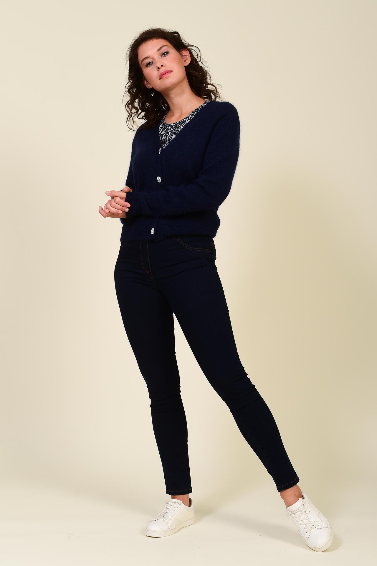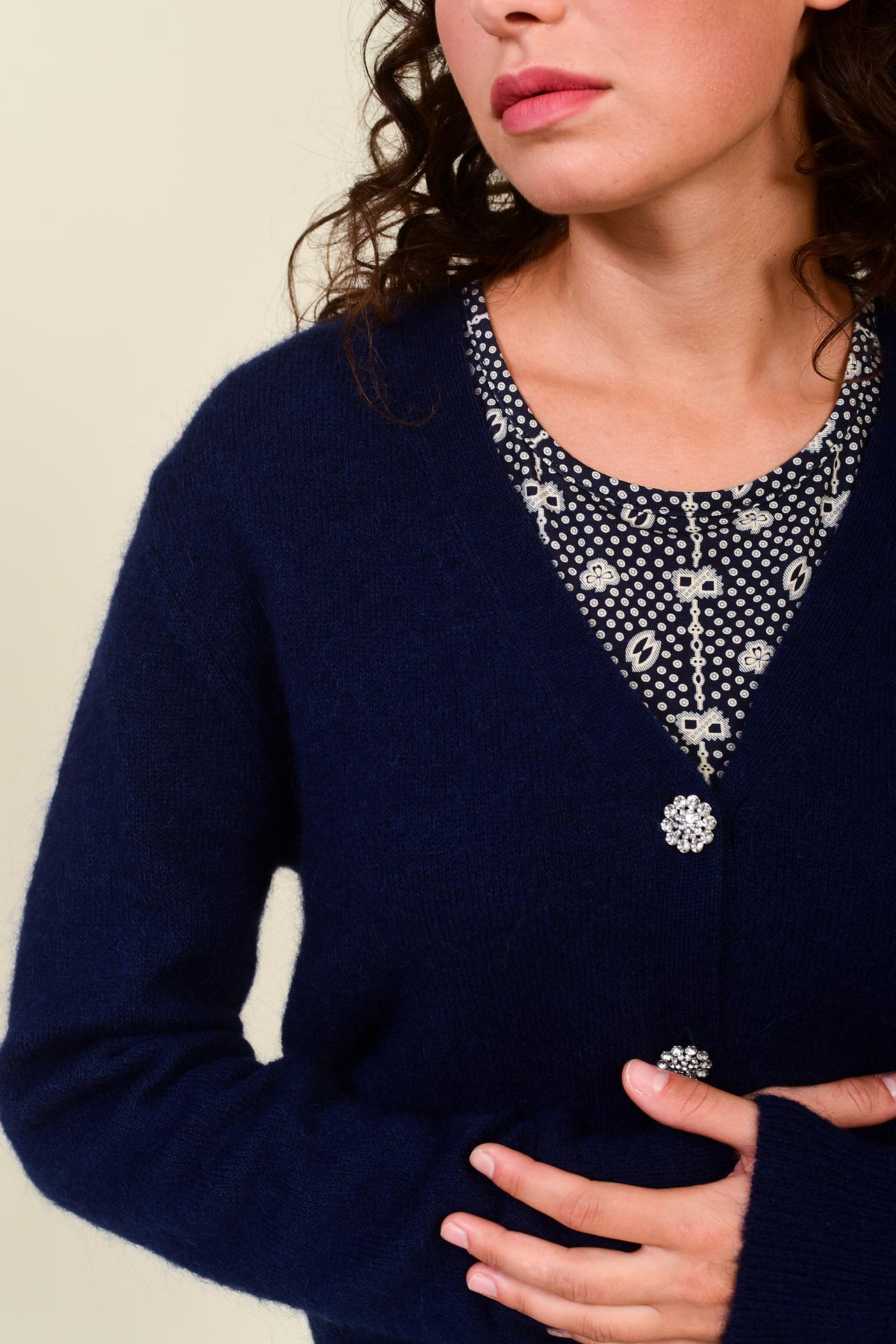 - Универсальный стиль. Классический прямой крой и синий цвет позволяют легко сочетать кардиган с различными элементами гардероба, создавая как повседневные, так и более формальные образы.