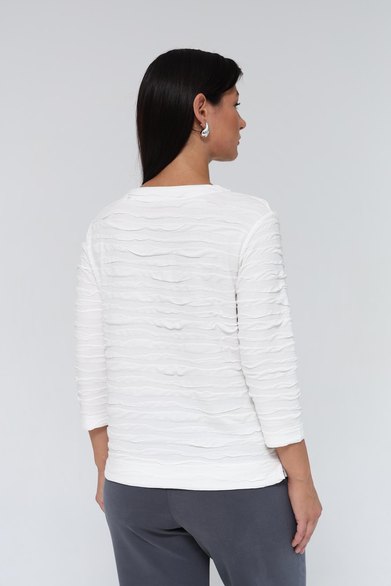 Изысканная белая блуза из коллекции Rabe – воплощение элегантности и комфорта. Мягкая и приятная к телу ткань с текстурным рисунком придает образу утонченность и шарм. Состав ткани (4% эластан, 28% полиэстер, 68% вискоза) обеспечивает прекрасную посадку по фигуре и долговечность изделия.