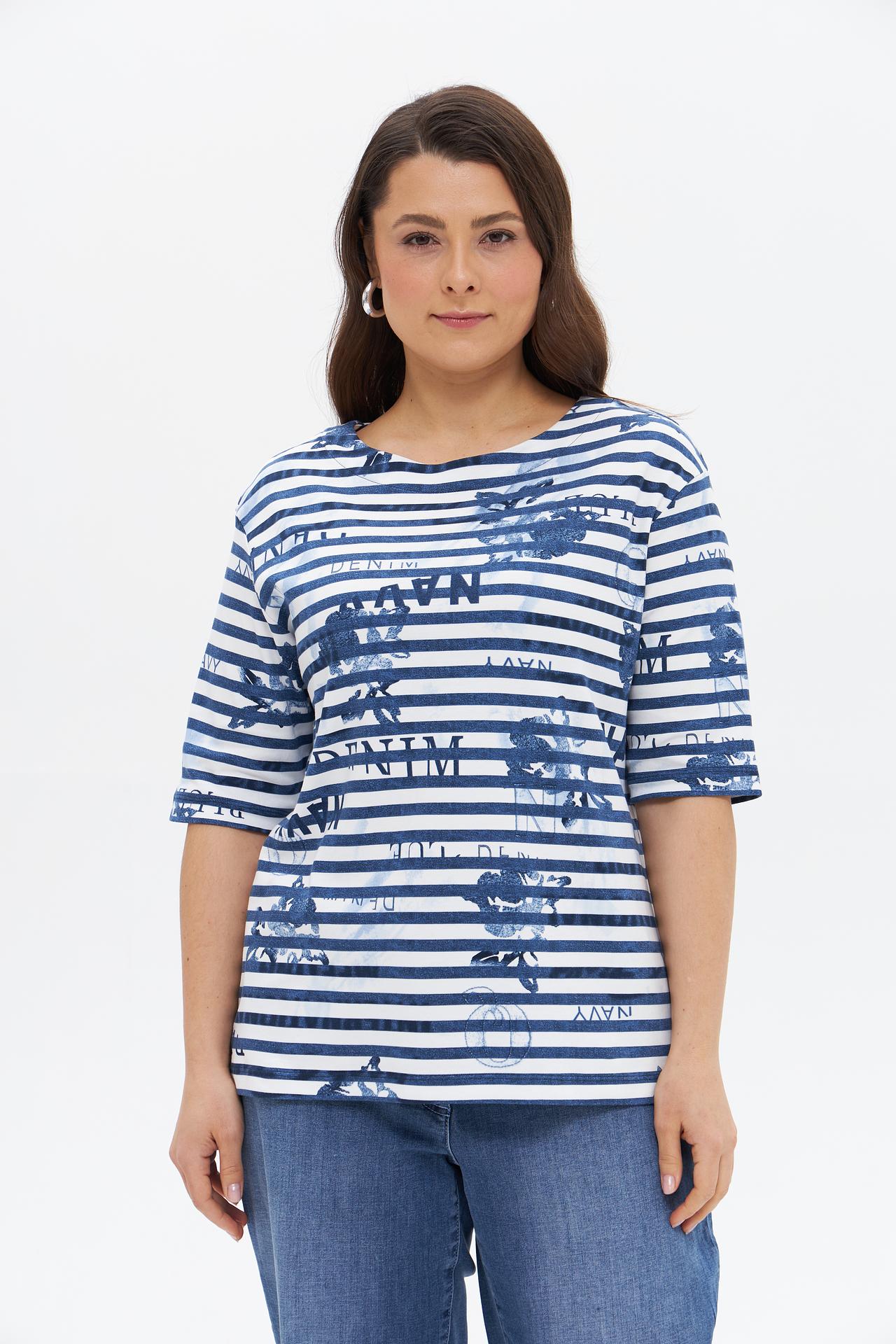 Эта стильная футболка от Rabe collection станет прекрасным дополнением к вашему гардеробу. Выполненная из 100% хлопка, она обеспечивает максимальный комфорт и приятна к телу. Полосатый дизайн и оригинальный принт добавляют образу свежести и индивидуальности. Идеально подходит для создания модных и расслабленных образов.
