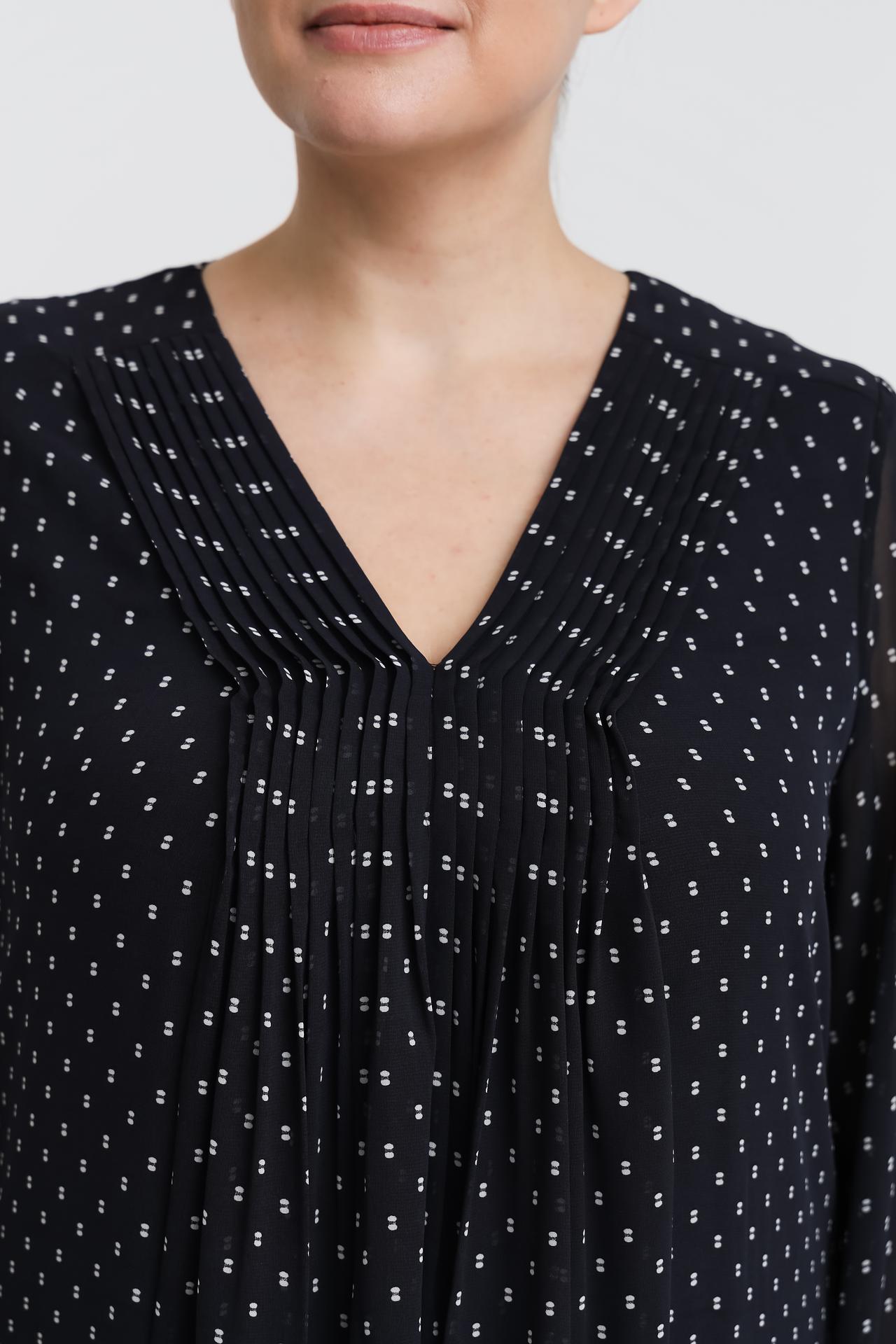 - Принт: Эффектный мелкий белый принт на тёмном фоне создает стильный и современный образ.